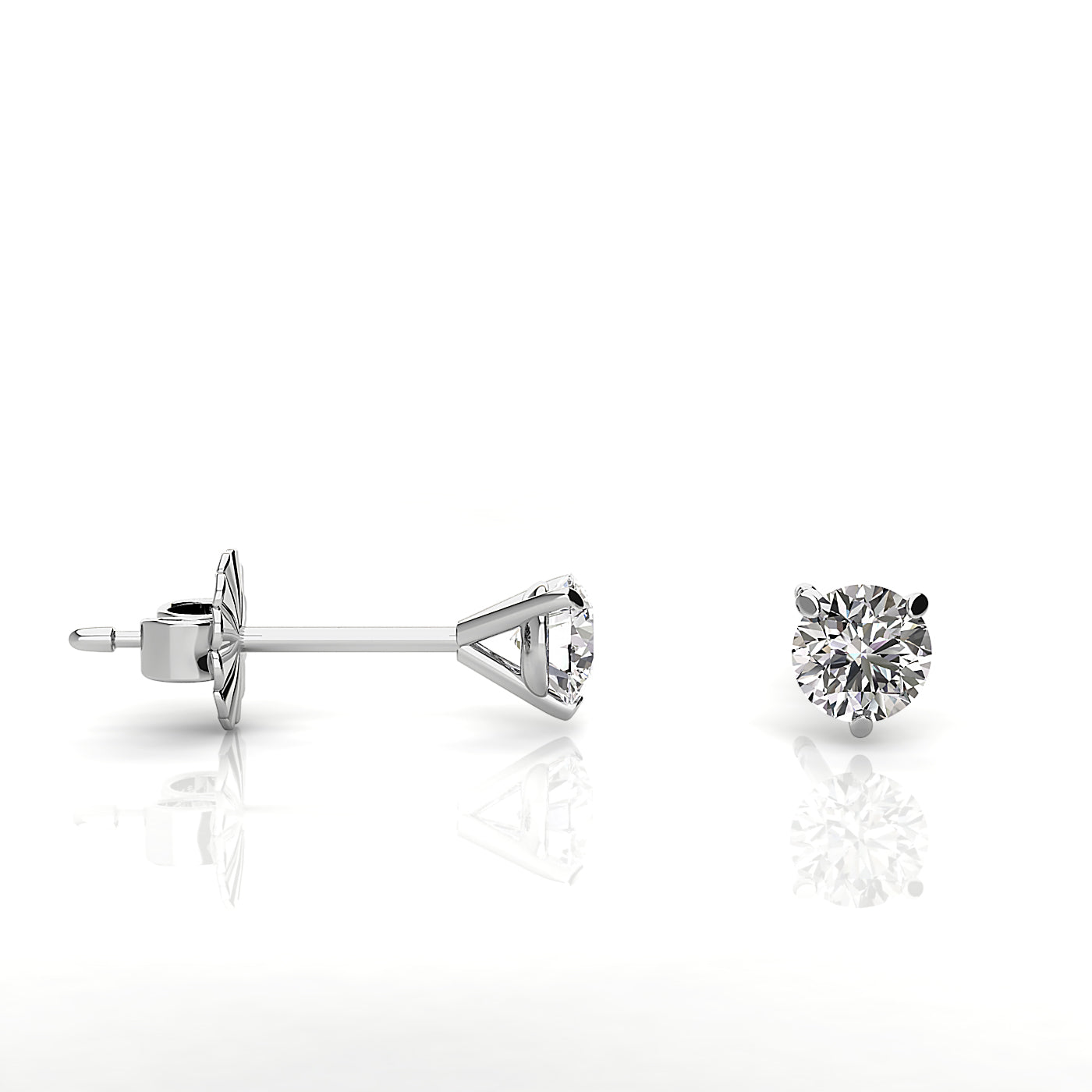 Lab Diamond Stud Earrings Three Prong 1.00 ctw - 14kt Gold  - D VVS1