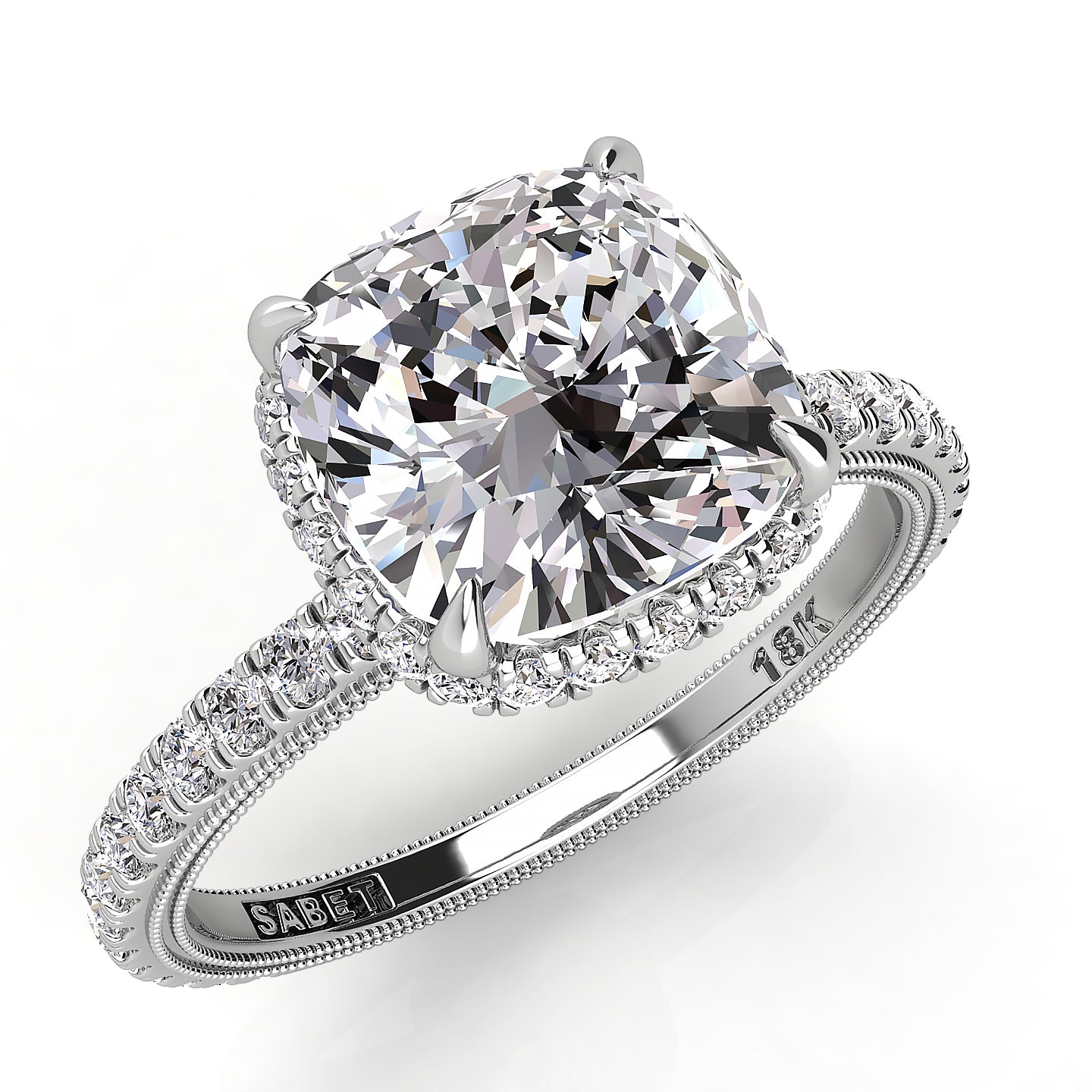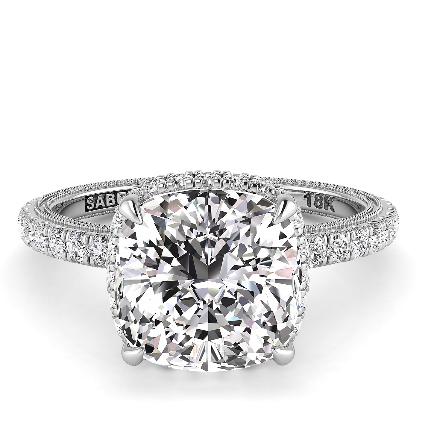 Discover our Cushion Cut Engagement Rings with exquisite Milgrain Shank designs. Each ring features a sparkling cushion-cut center stone, elegantly framed by vintage-inspired milgrain detailing along the band. Ideal for brides seeking a timeless yet unique engagement ring, our milgrain shank cushion rings offer intricate craftsmanship and enduring elegance. Shop now for the perfect blend of classic beauty and modern sophistication in your milgrain cushion engagement ring.