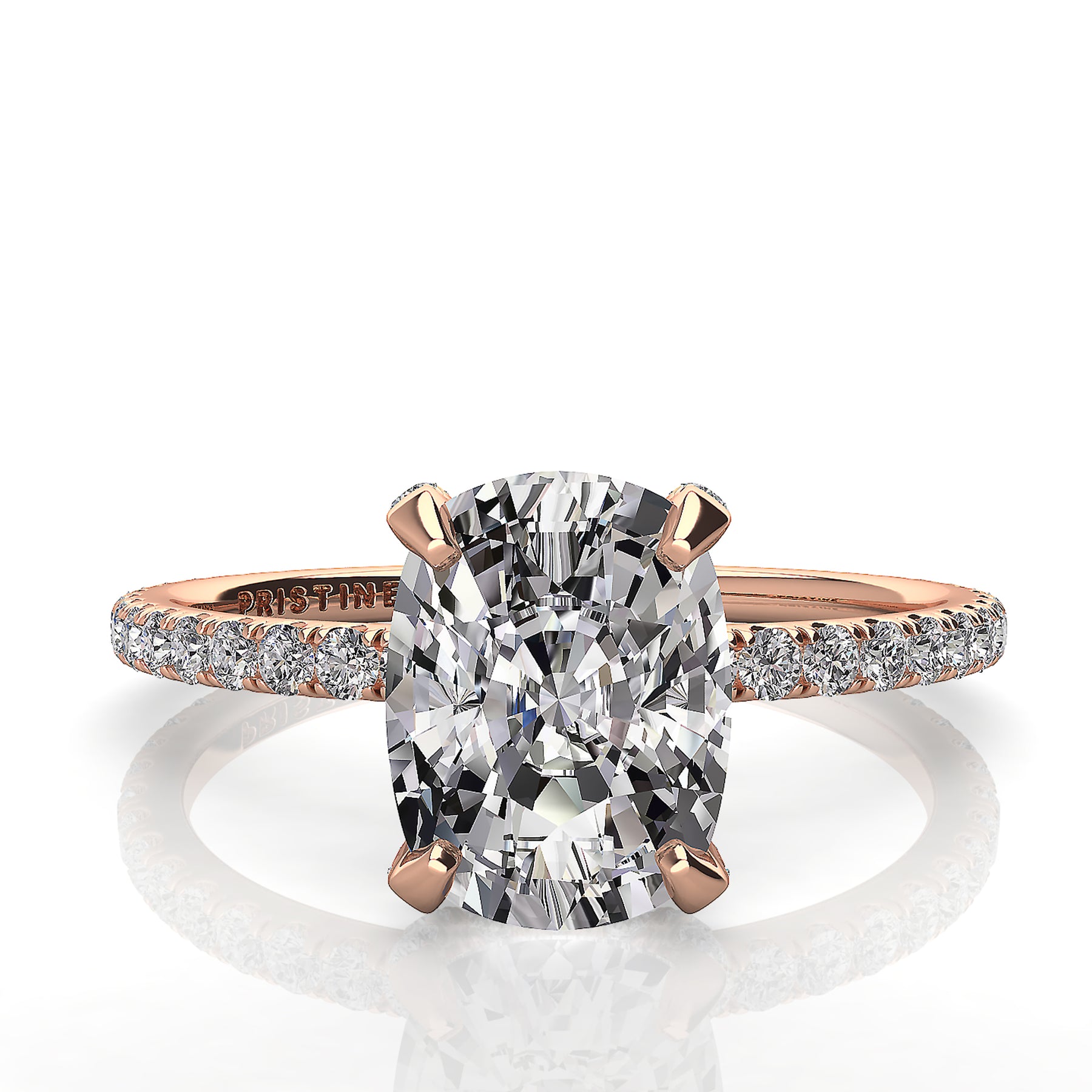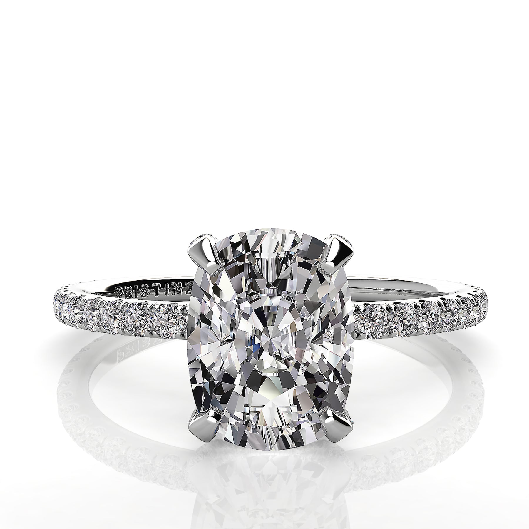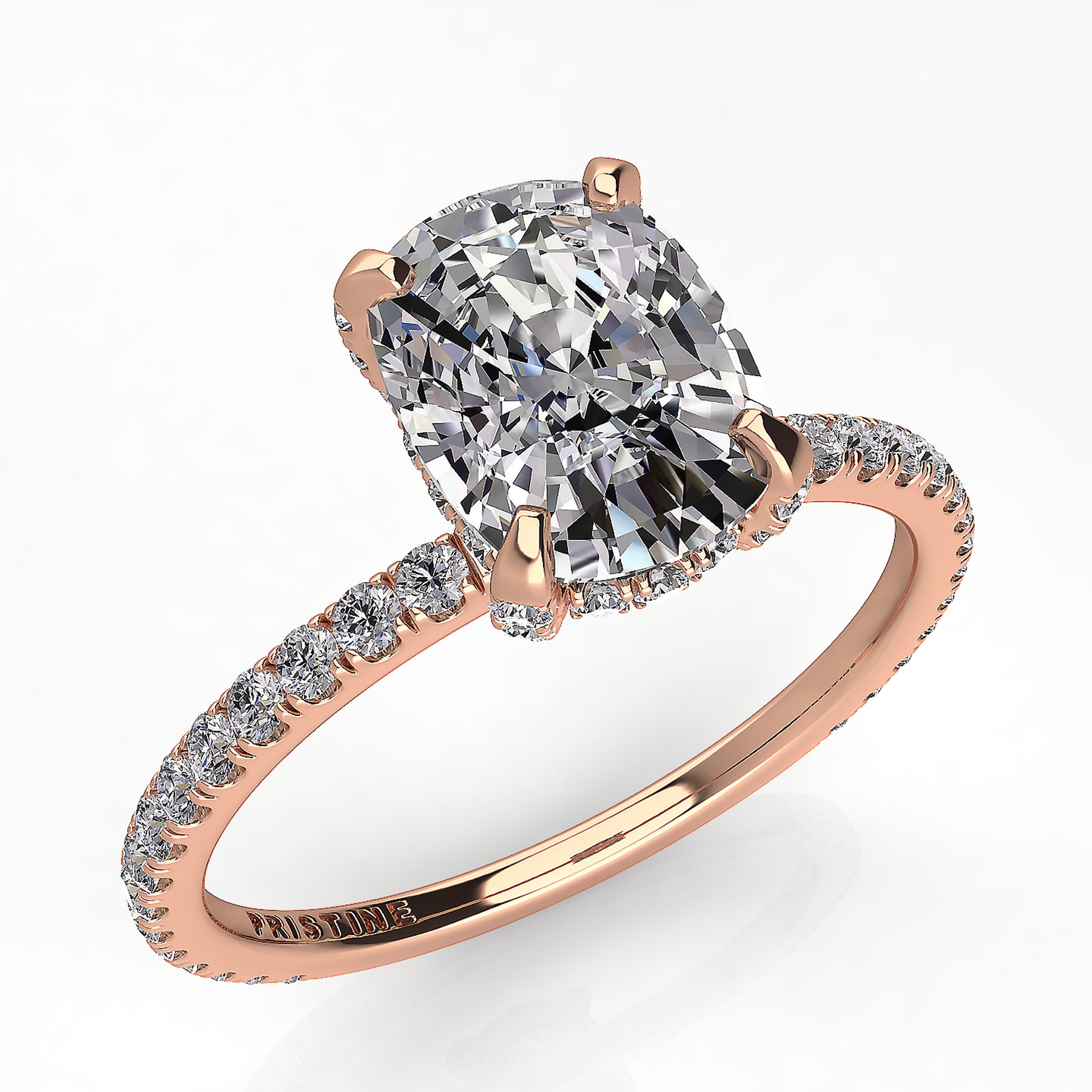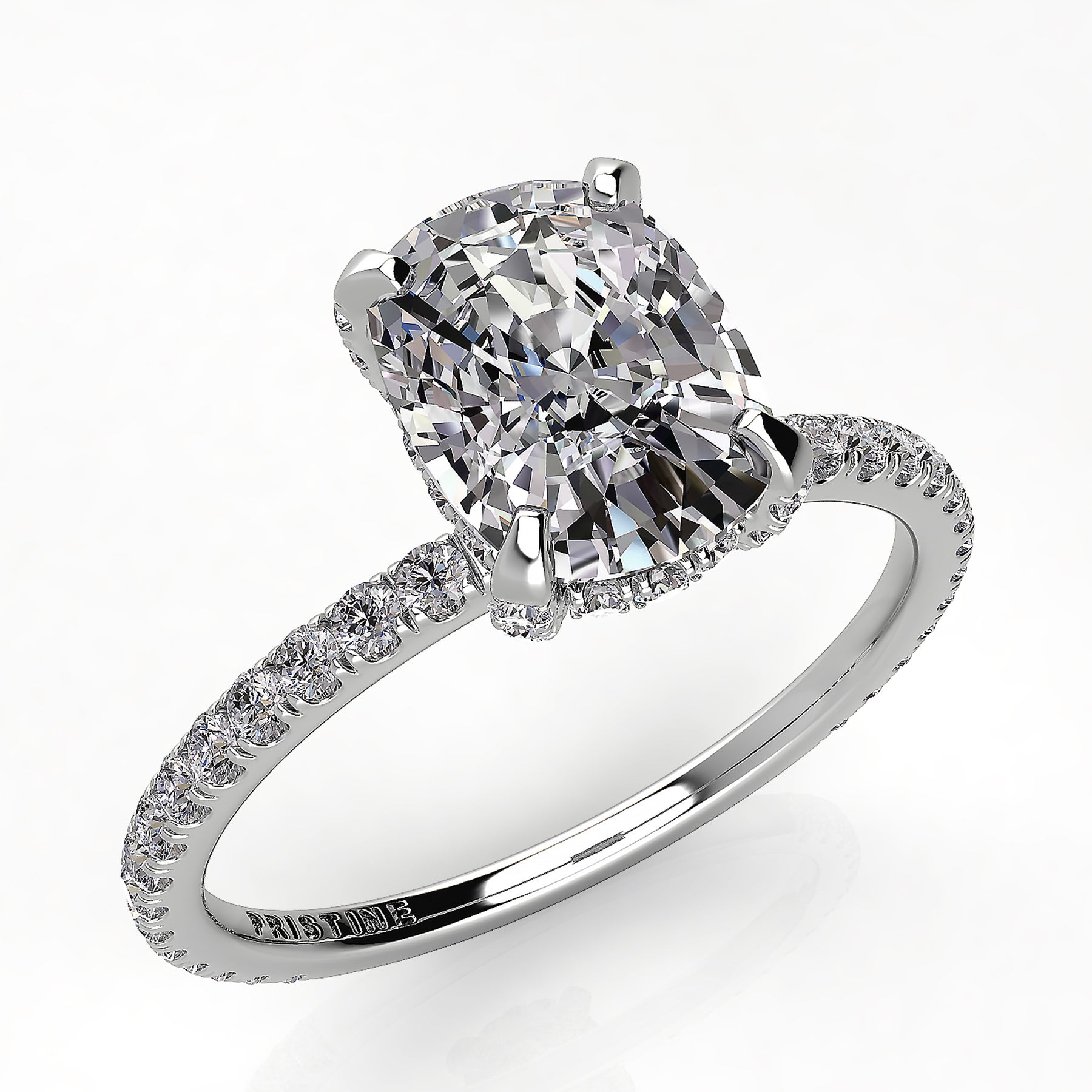 Cushion Cut Engagement Ring with Hidden Halo | Diamond Halo Cushion Ring