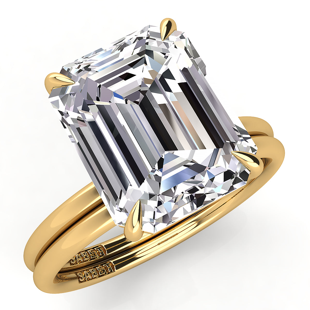 Discover our stunning Emerald Engagement Ring, featuring a dazzling pave diamond belt that captures timeless elegance. Crafted with exquisite emerald-cut center stones and sparkling pave-set diamonds, this ring offers brilliance and sophistication. Perfect for those seeking unique and luxurious engagement rings, our emerald pave diamond belt design stands out for its exceptional craftsmanship and elegant appeal. Choose this Emerald Diamond Engagement Ring for a symbol of enduring love and unmatched beauty.