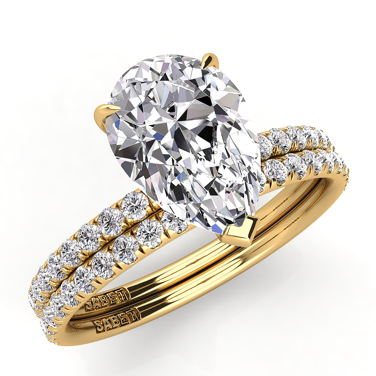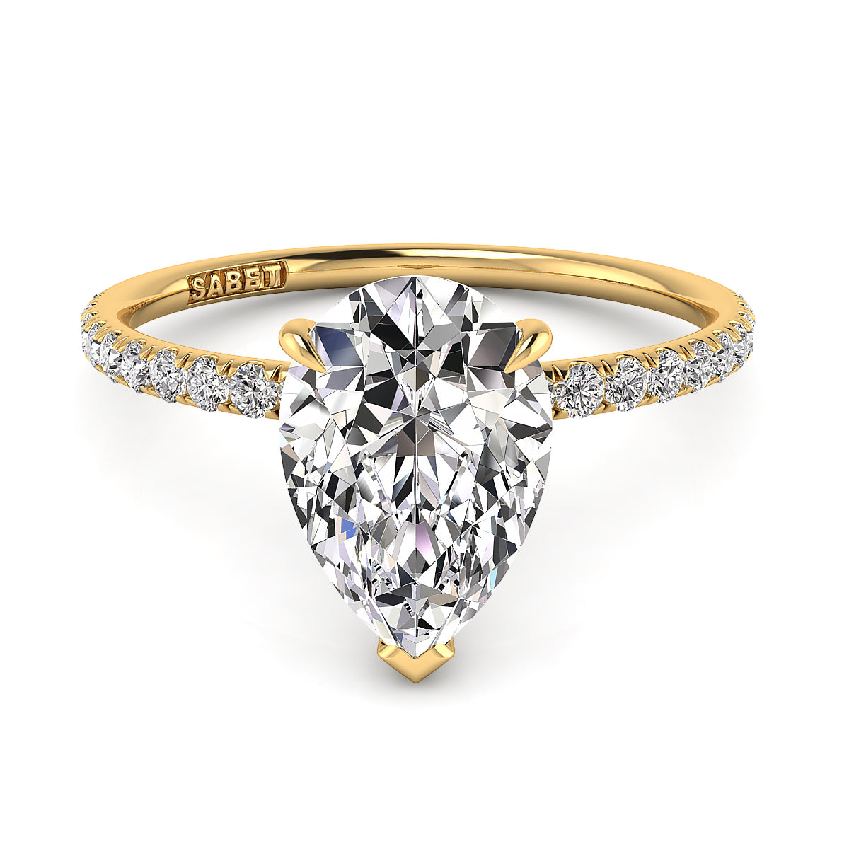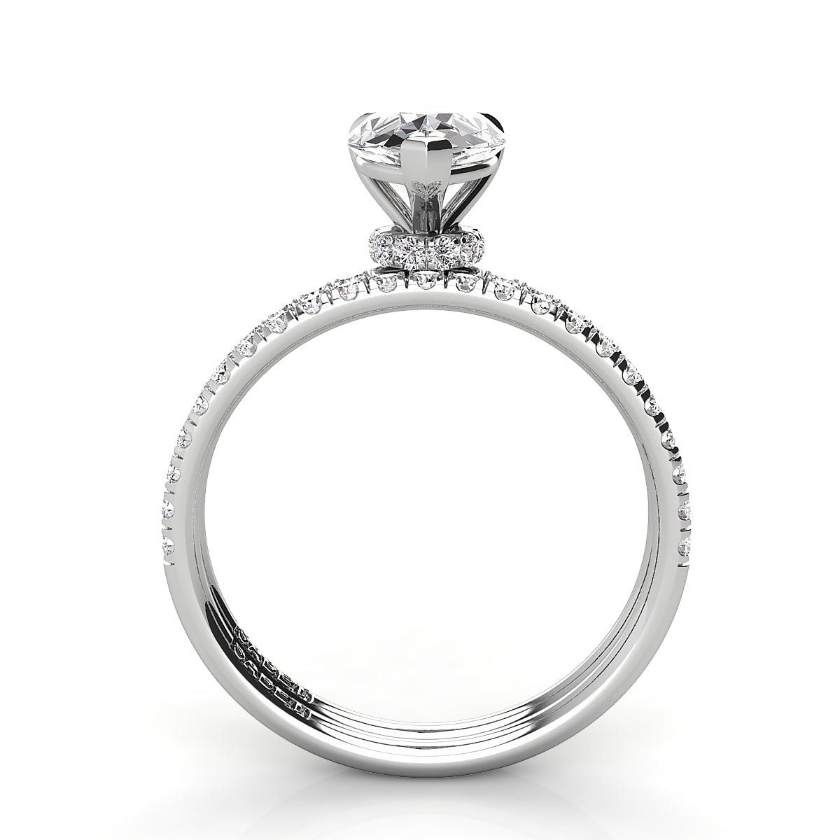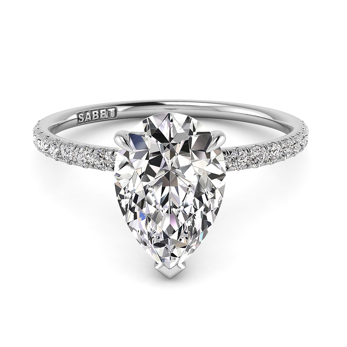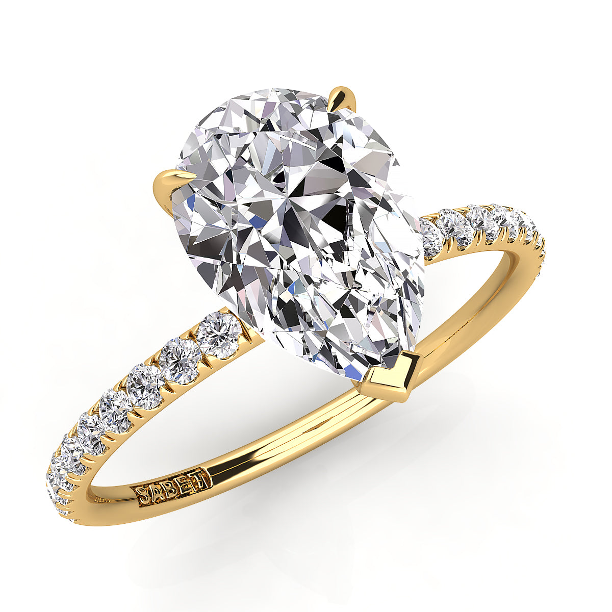 Discover the perfect symbol of love with our Pear Shape Diamond Engagement Ring featuring a stunning pavé setting and an elegant diamond belt. This dazzling ring showcases a brilliant pear-shaped diamond, expertly set with shimmering pavé diamonds along the band for added sparkle. Crafted for timeless elegance, our engagement ring combines modern style with classic sophistication, making it the ideal choice for your proposal. Celebrate your unique love story with a pear-shaped pavé diamond engagement ring that shines from every angle. Shop now for the ultimate expression of commitment and romance.