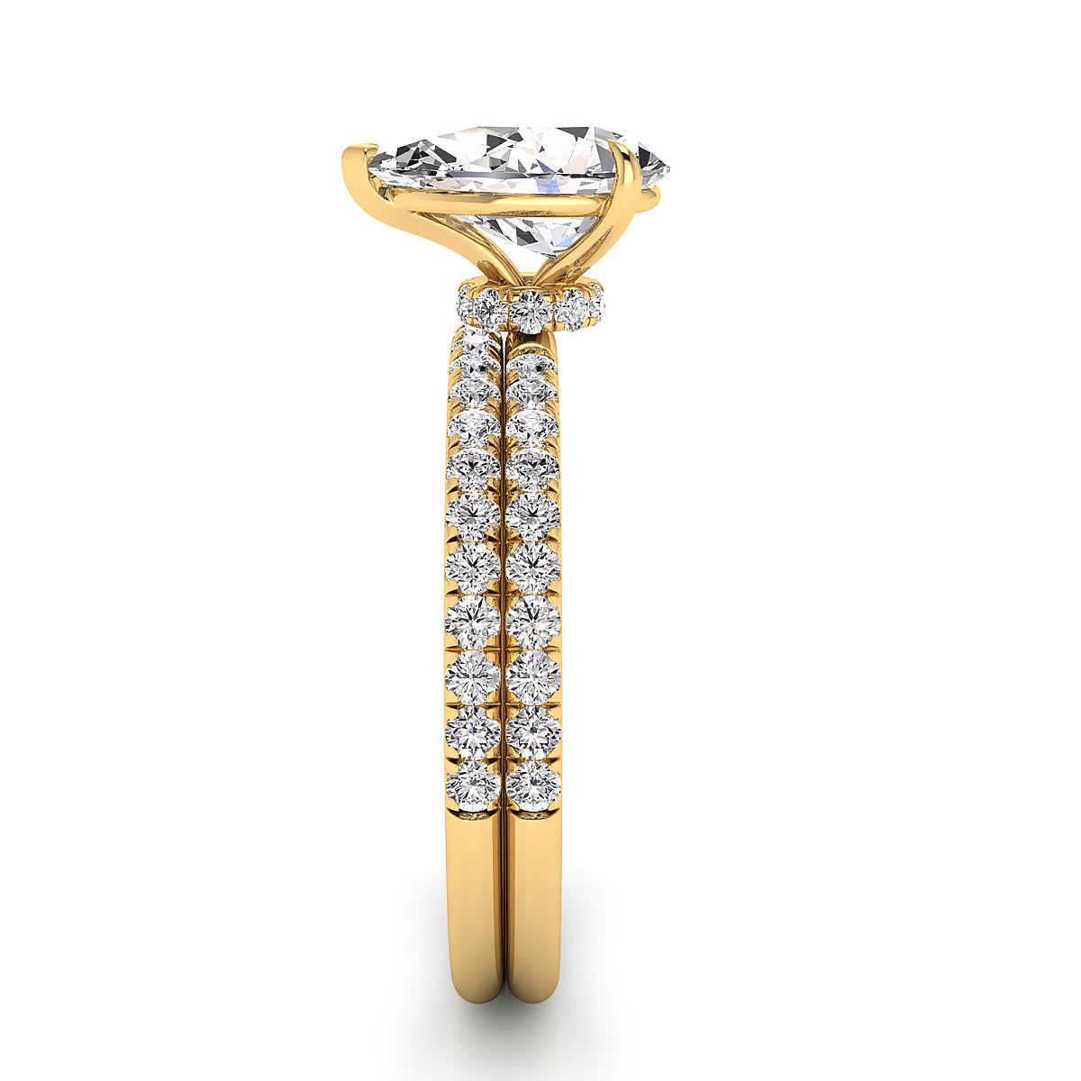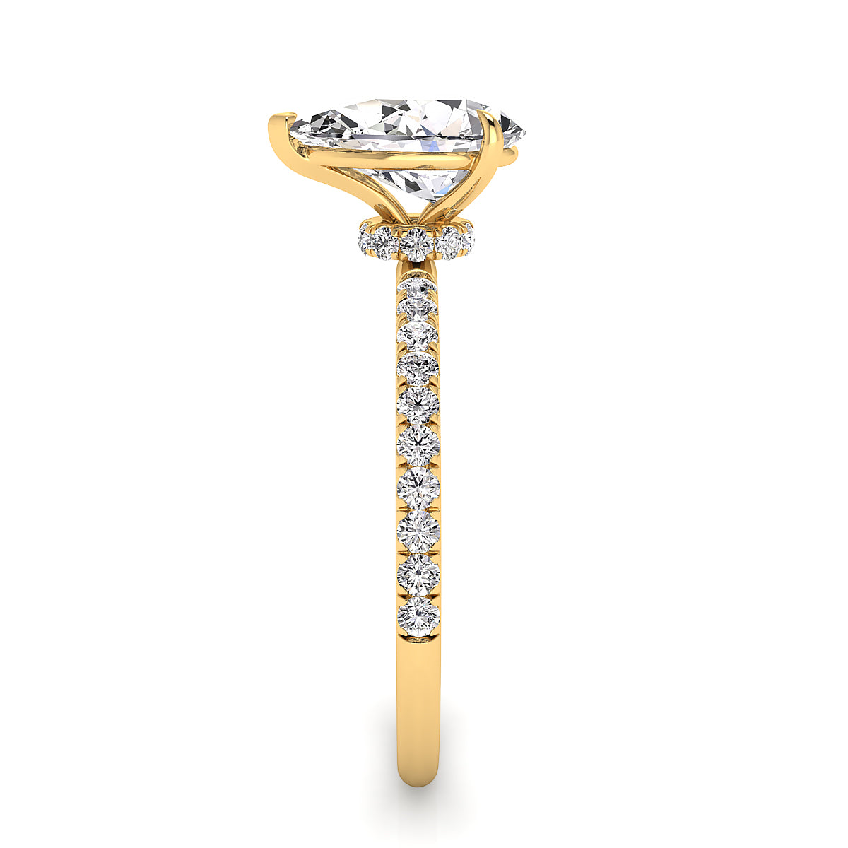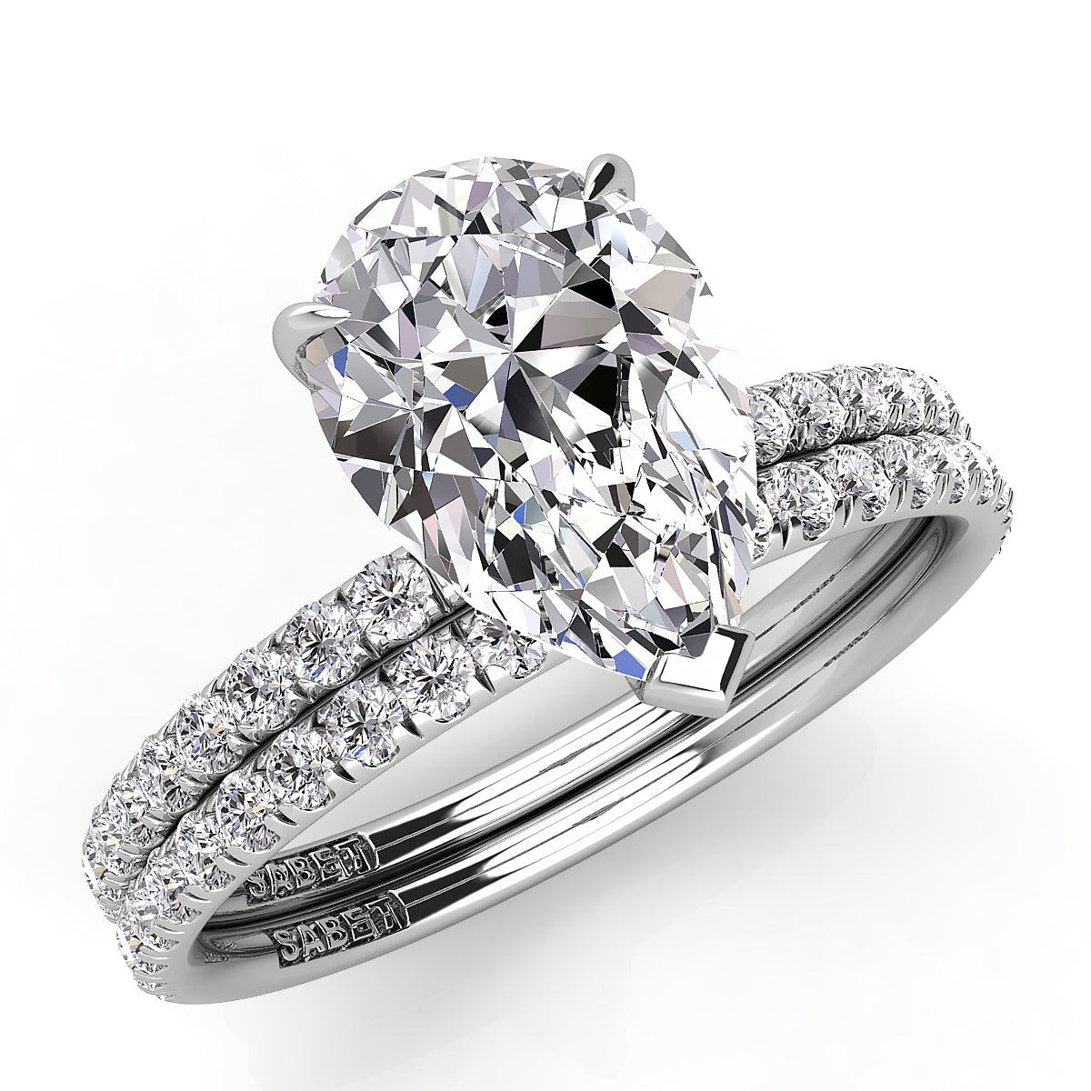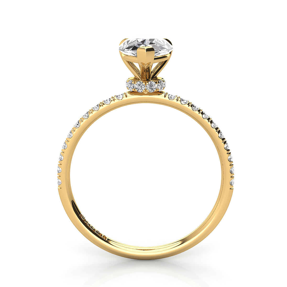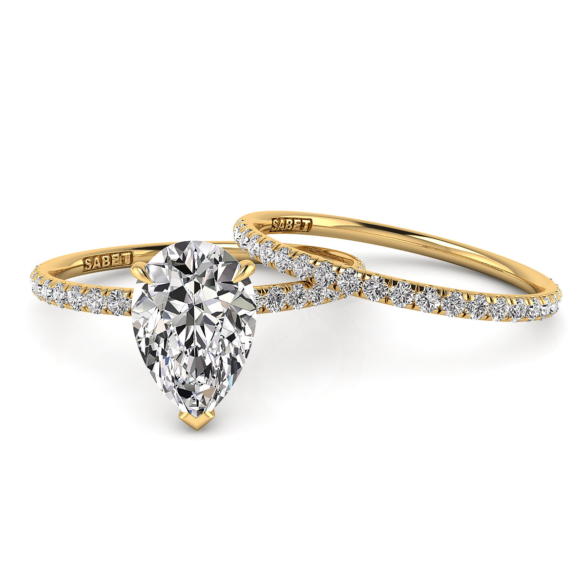 Discover the perfect symbol of love with our Pear Shape Diamond Engagement Ring featuring a stunning pavé setting and an elegant diamond belt. This dazzling ring showcases a brilliant pear-shaped diamond, expertly set with shimmering pavé diamonds along the band for added sparkle. Crafted for timeless elegance, our engagement ring combines modern style with classic sophistication, making it the ideal choice for your proposal. Celebrate your unique love story with a pear-shaped pavé diamond engagement ring that shines from every angle. Shop now for the ultimate expression of commitment and romance.