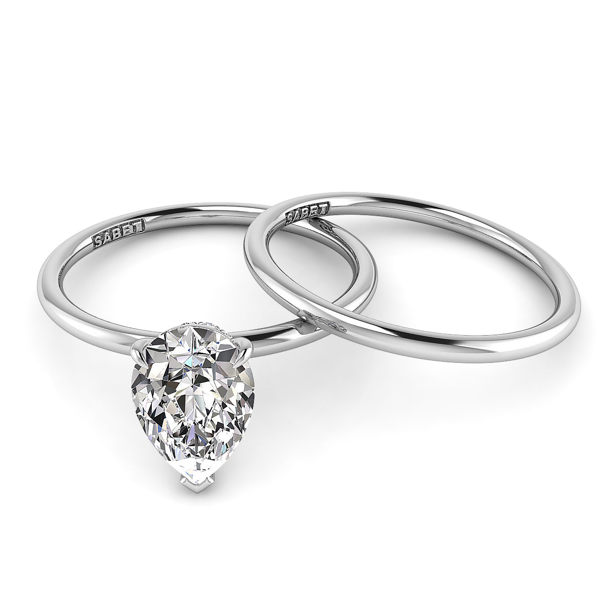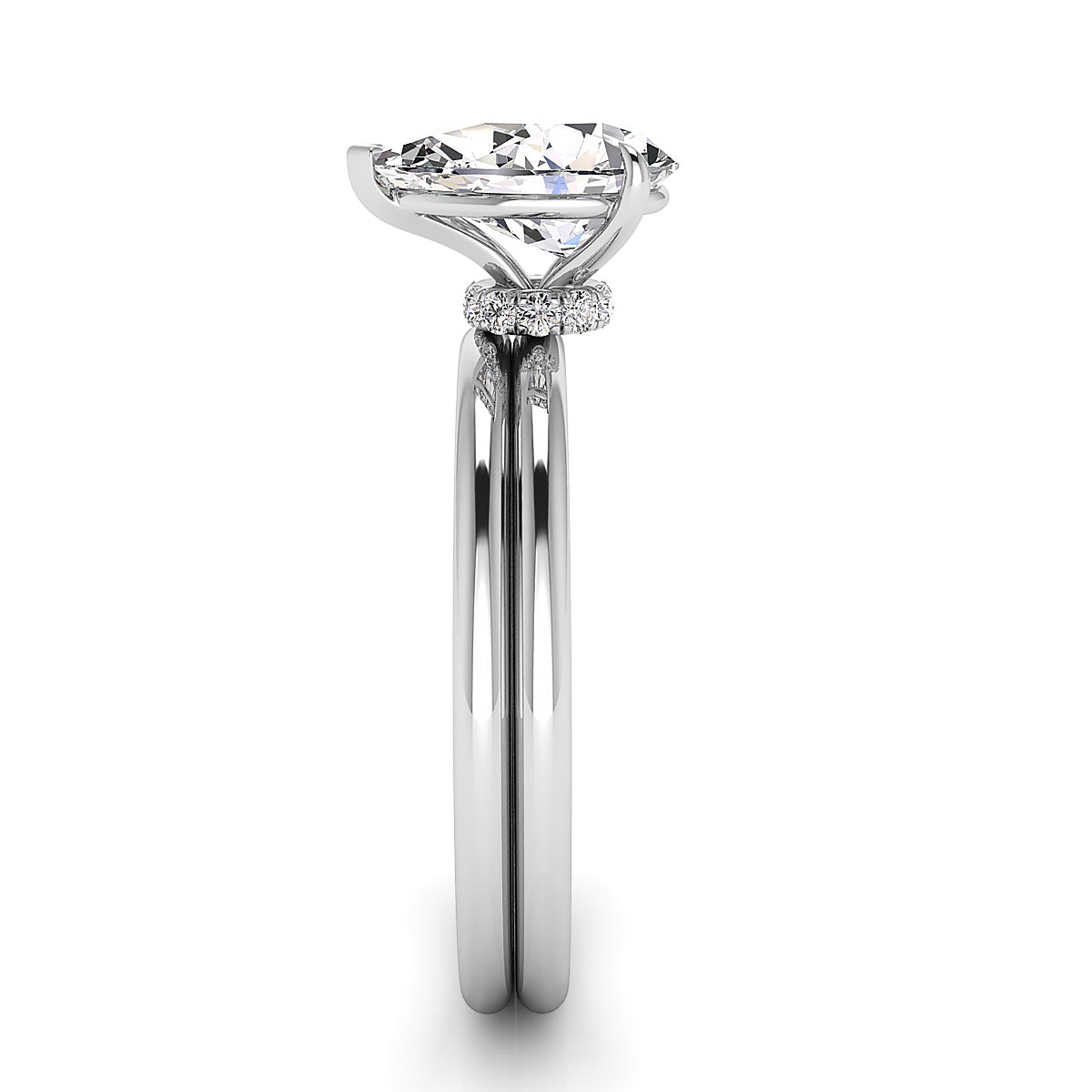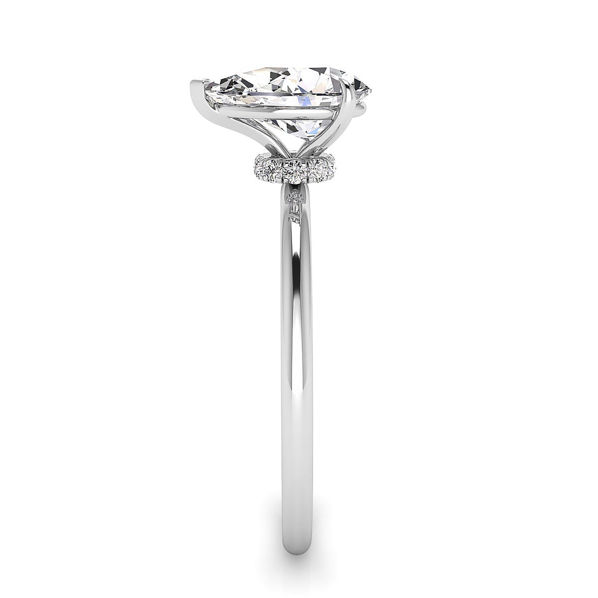 Discover our exquisite pear shape engagement rings featuring a stunning pave diamond belt. Each ring is expertly crafted to highlight the brilliance of the pear-shaped center stone, surrounded by a sparkling band of meticulously set diamonds. Perfect for symbolizing your unique love story, our pave diamond belt engagement rings offer elegance, sophistication, and timeless beauty. Shop now to find your dream pear shape engagement ring with a dazzling diamond pave setting.