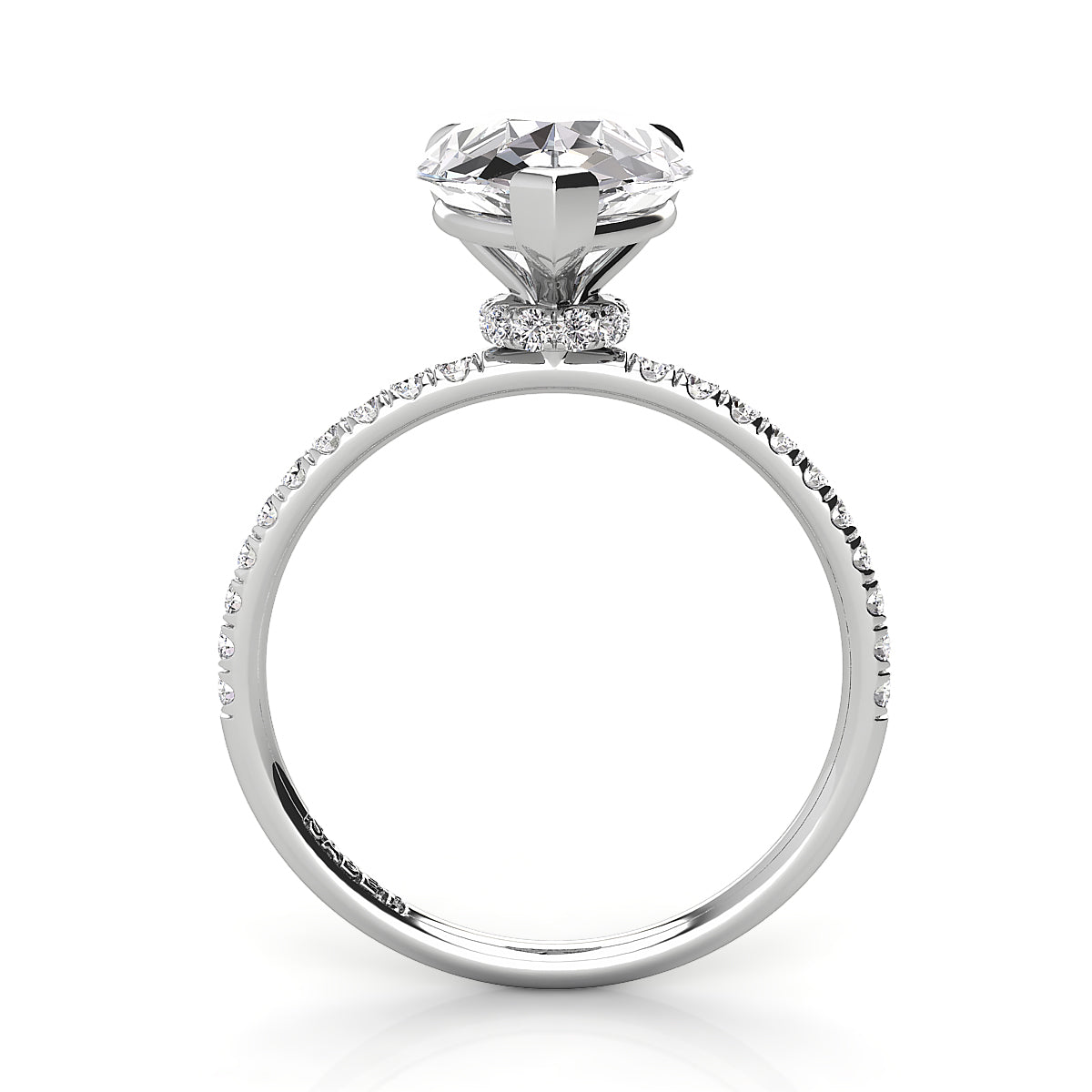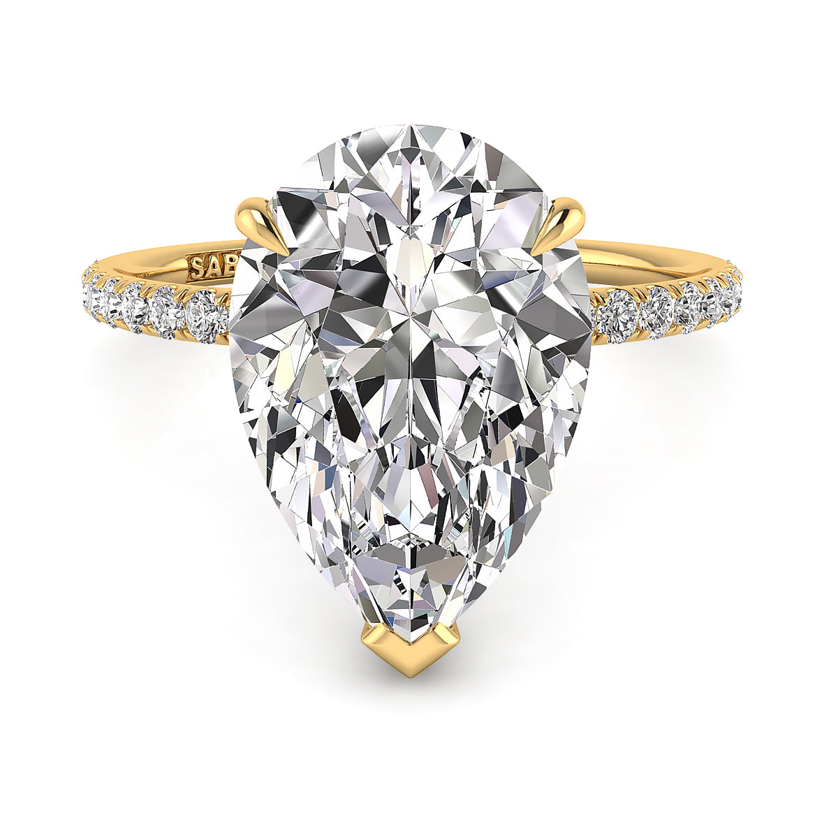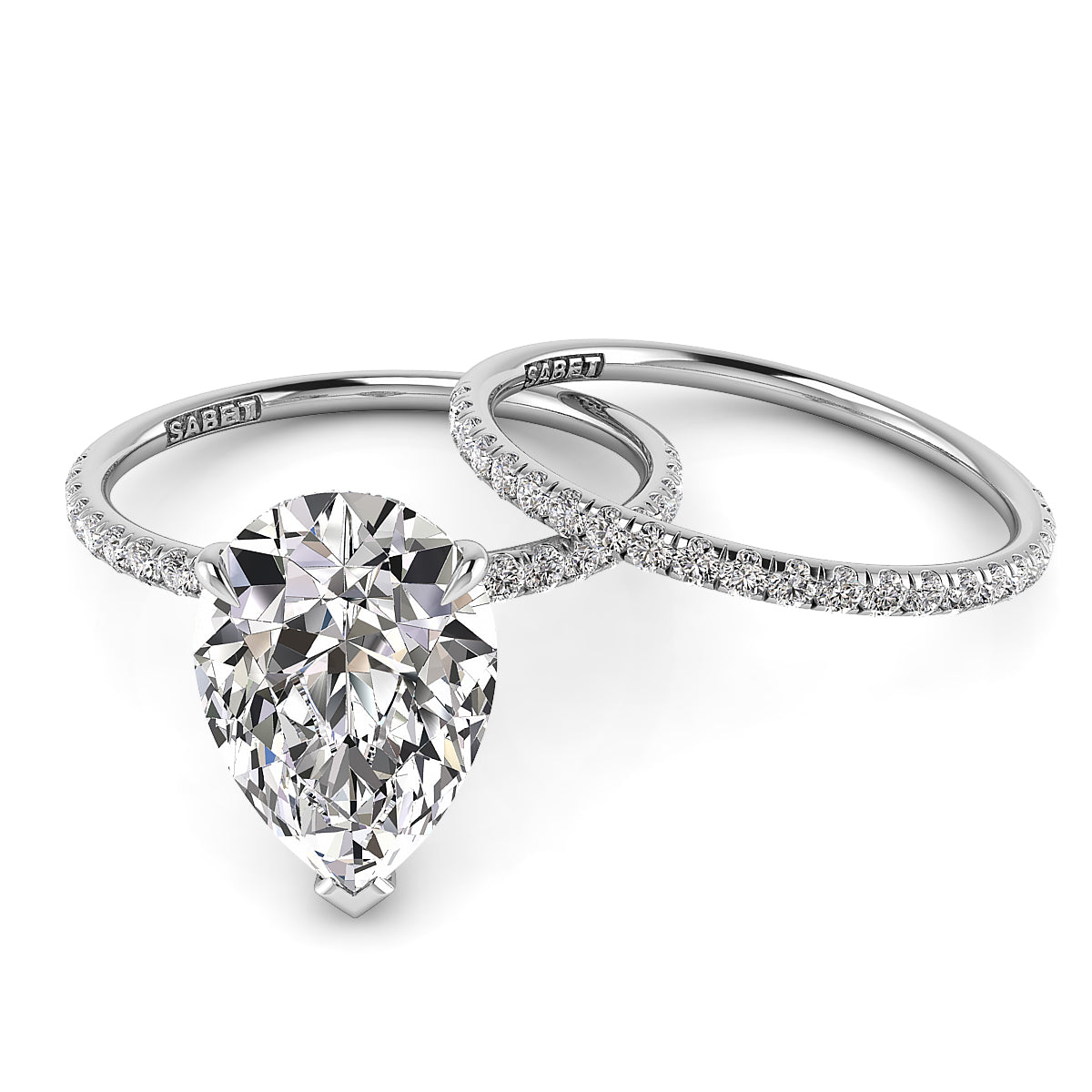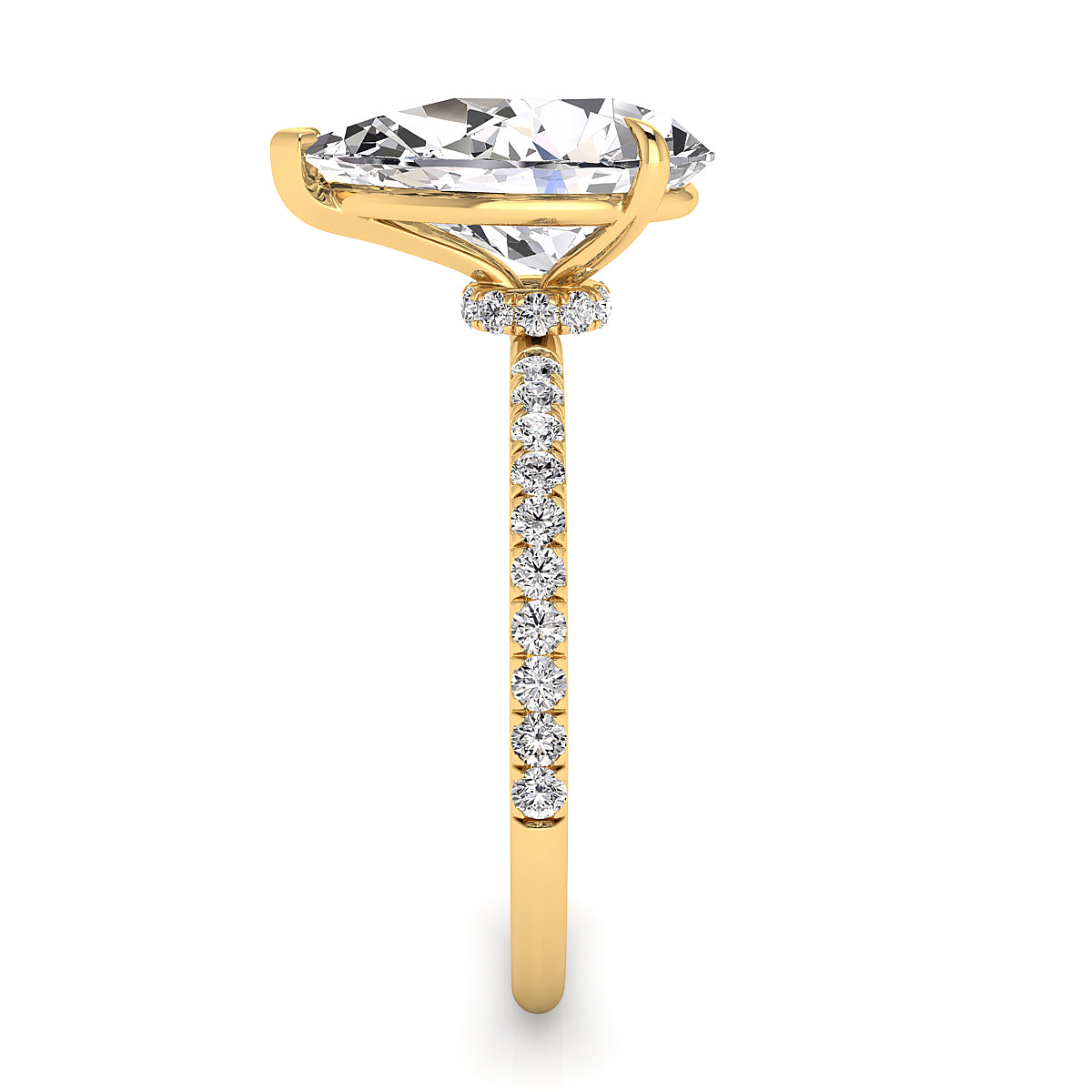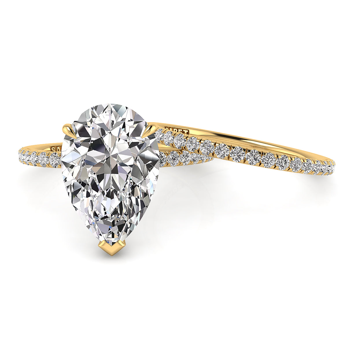 Discover our exquisite pear-shaped engagement rings featuring a dazzling pave diamond belt. Each ring is expertly crafted to showcase a stunning pear-cut center diamond, surrounded by sparkling pave-set diamonds along the band for maximum brilliance. Perfect for a unique and elegant proposal, our pear shape engagement rings with a diamond belt offer timeless beauty and modern sophistication. Shop now and find the perfect diamond engagement ring to celebrate your love.