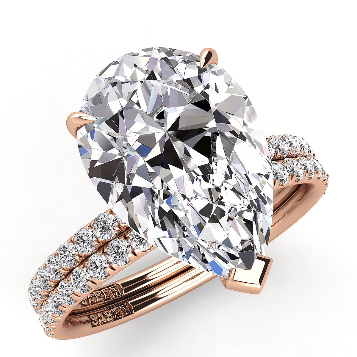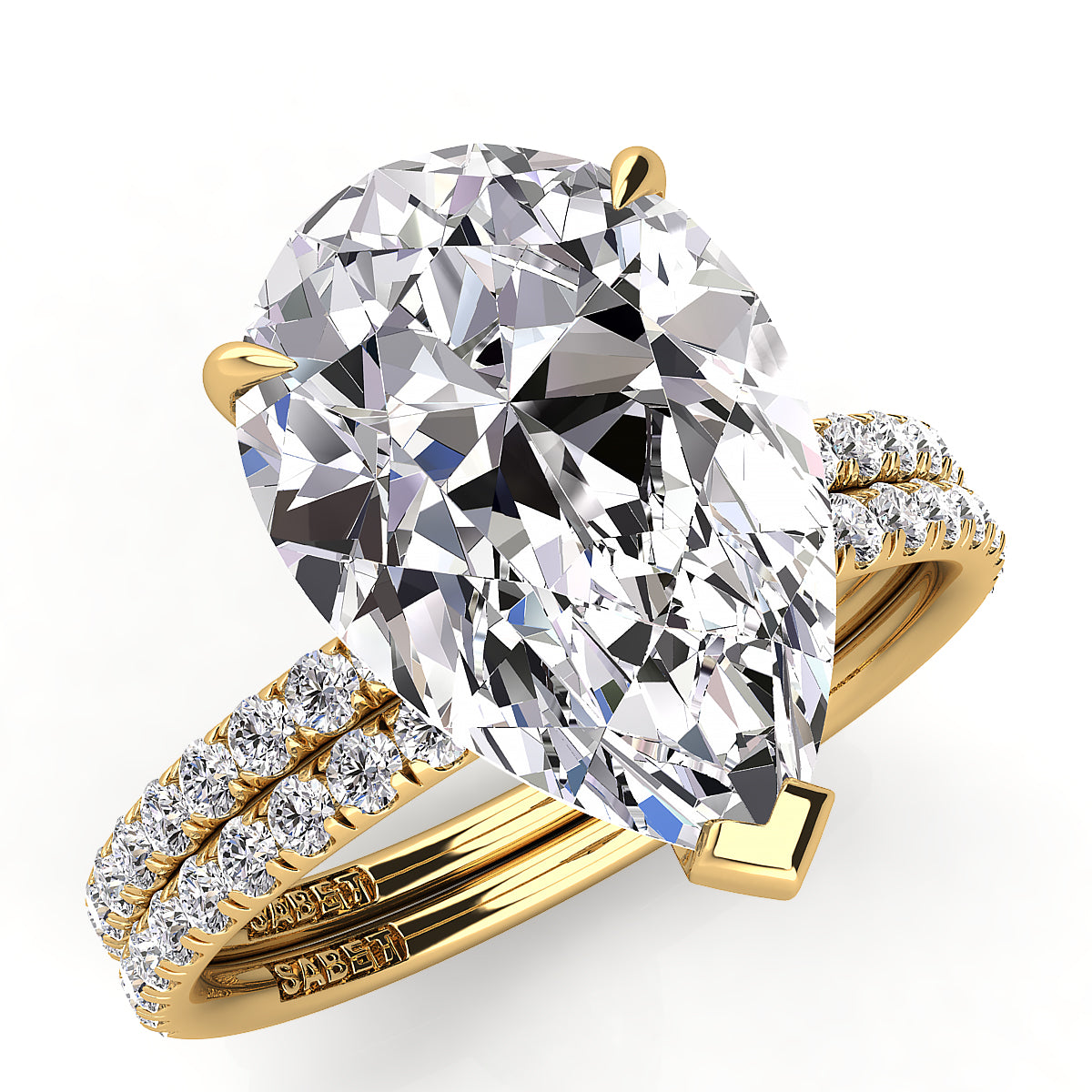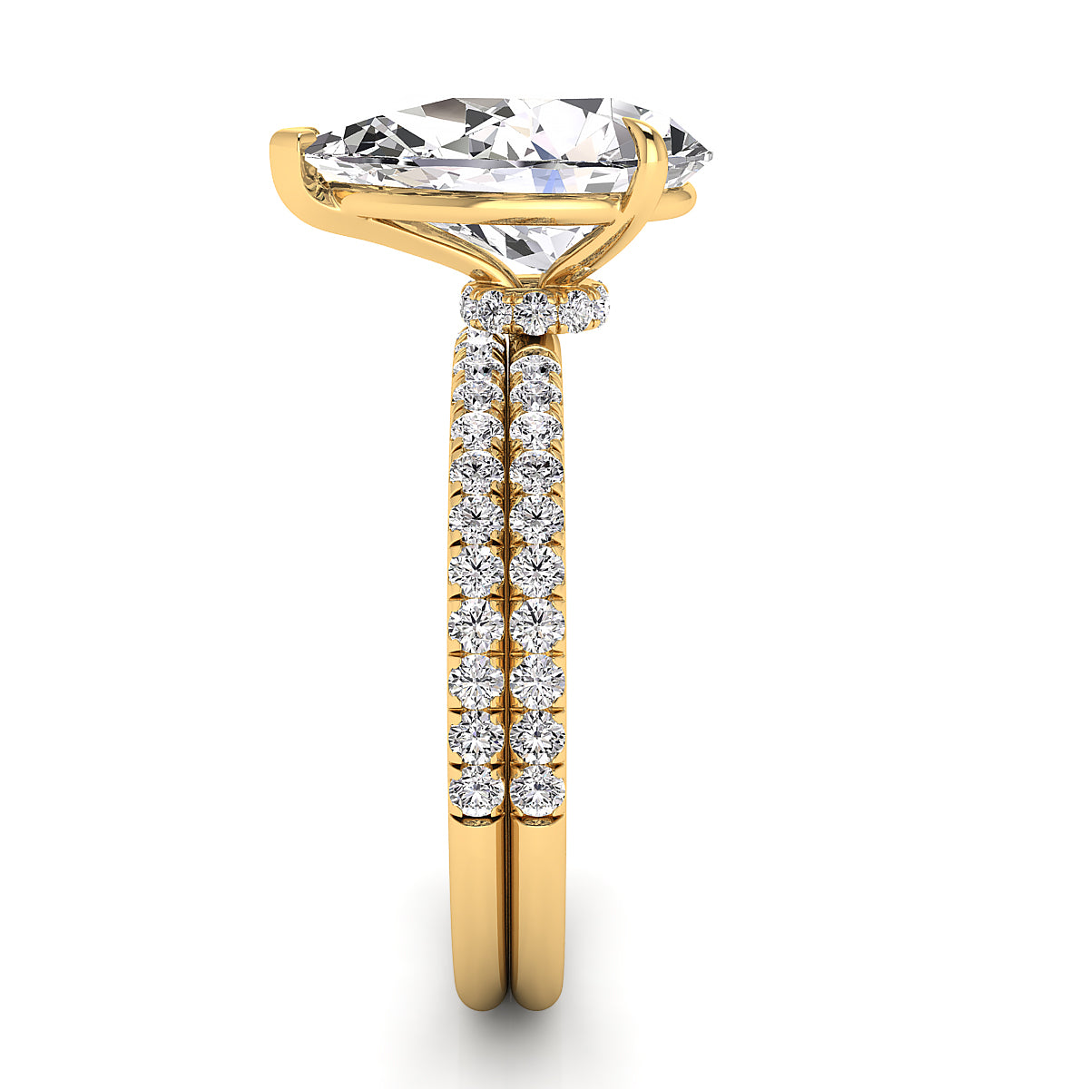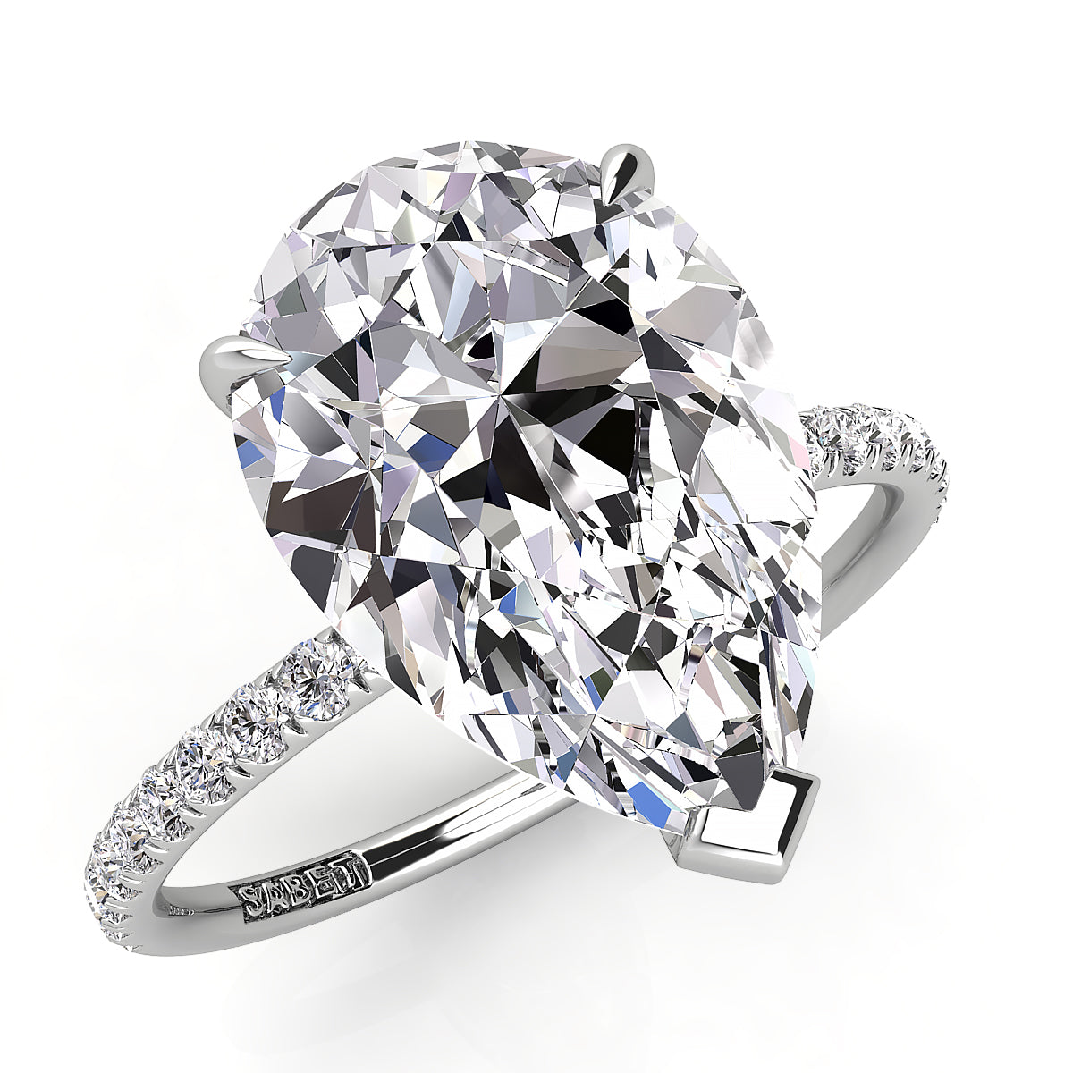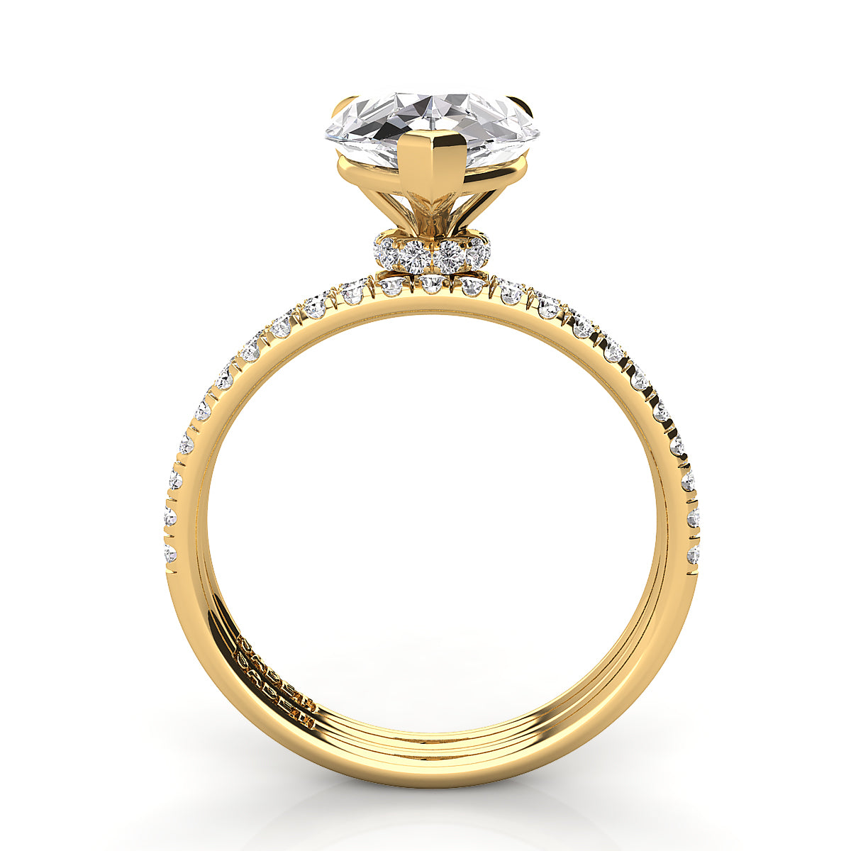Discover our exquisite pear-shaped engagement rings featuring a dazzling pave diamond belt. Each ring is expertly crafted to showcase a stunning pear-cut center diamond, surrounded by sparkling pave-set diamonds along the band for maximum brilliance. Perfect for a unique and elegant proposal, our pear shape engagement rings with a diamond belt offer timeless beauty and modern sophistication. Shop now and find the perfect diamond engagement ring to celebrate your love.