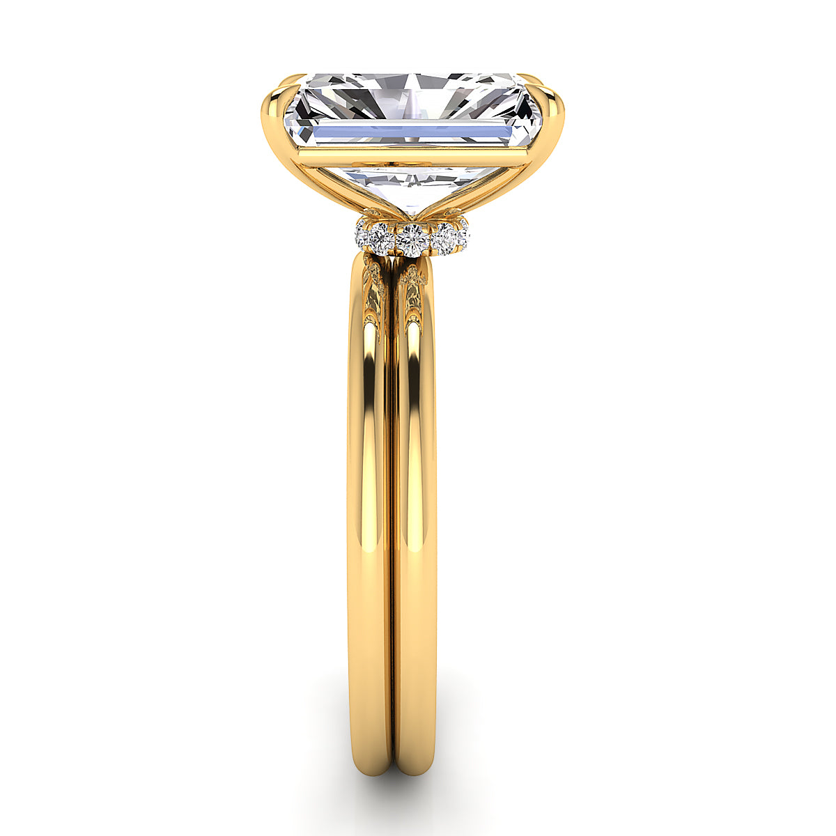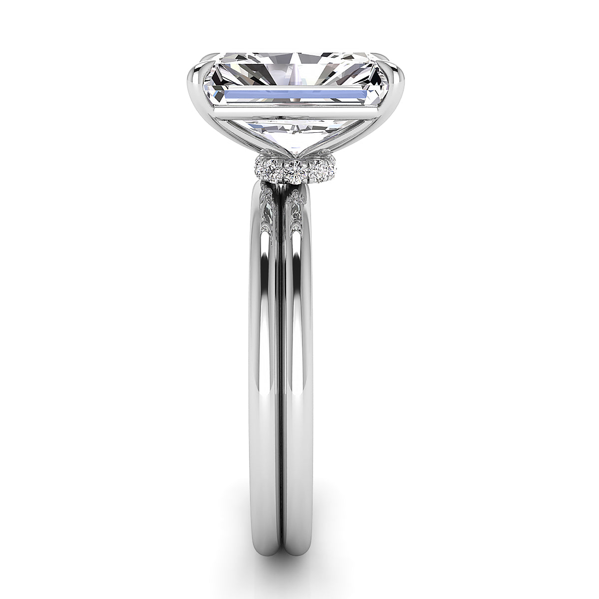 Discover our stunning Radiant cut engagement rings, featuring intricate diamond pave settings and elegant diamond belts. Each ring is designed to maximize brilliance, offering exceptional sparkle and timeless sophistication. Perfect for those seeking a luxurious, modern engagement ring with irresistible glamour and exquisite craftsmanship. Shop Radiant engagement rings with pave diamonds and diamond belt details for a truly unforgettable proposal.