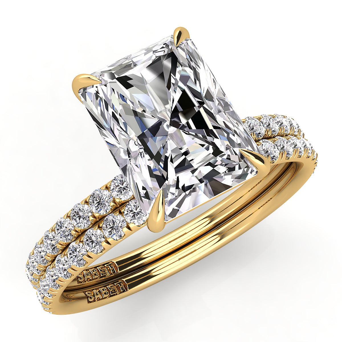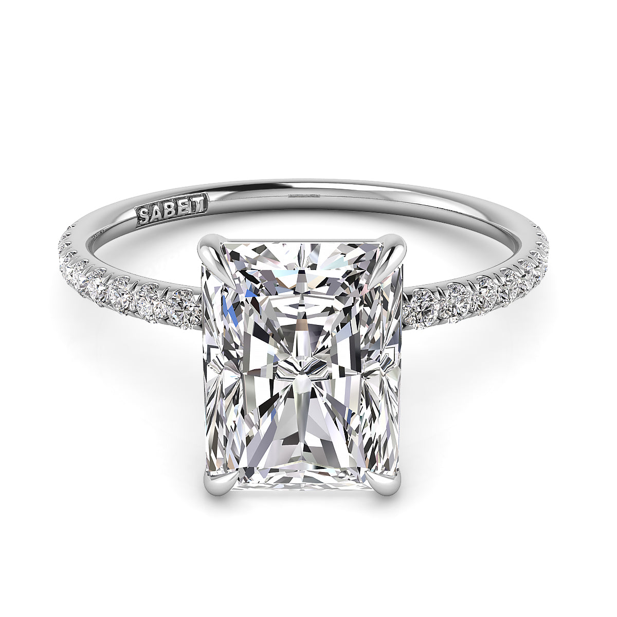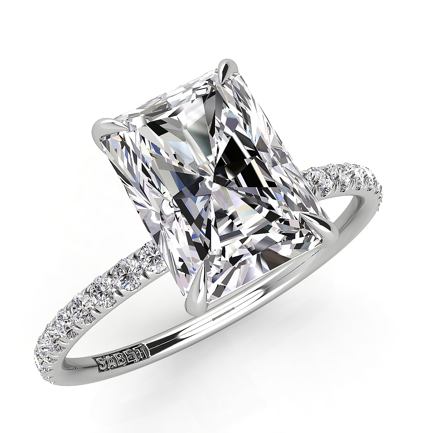 Discover our exquisite Radiant cut engagement rings featuring a stunning pave diamond belt. Each ring showcases a brilliant Radiant center stone, elegantly embraced by a sparkling pave diamond band, creating a luxurious and timeless look. Perfect for those seeking a unique and dazzling symbol of everlasting love, our Radiant pave engagement rings offer exceptional brilliance and unmatched elegance. Shop now to find your dream diamond engagement ring with a breathtaking pave diamond belt.