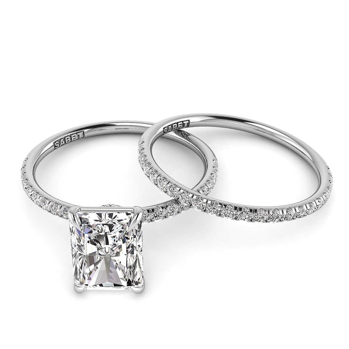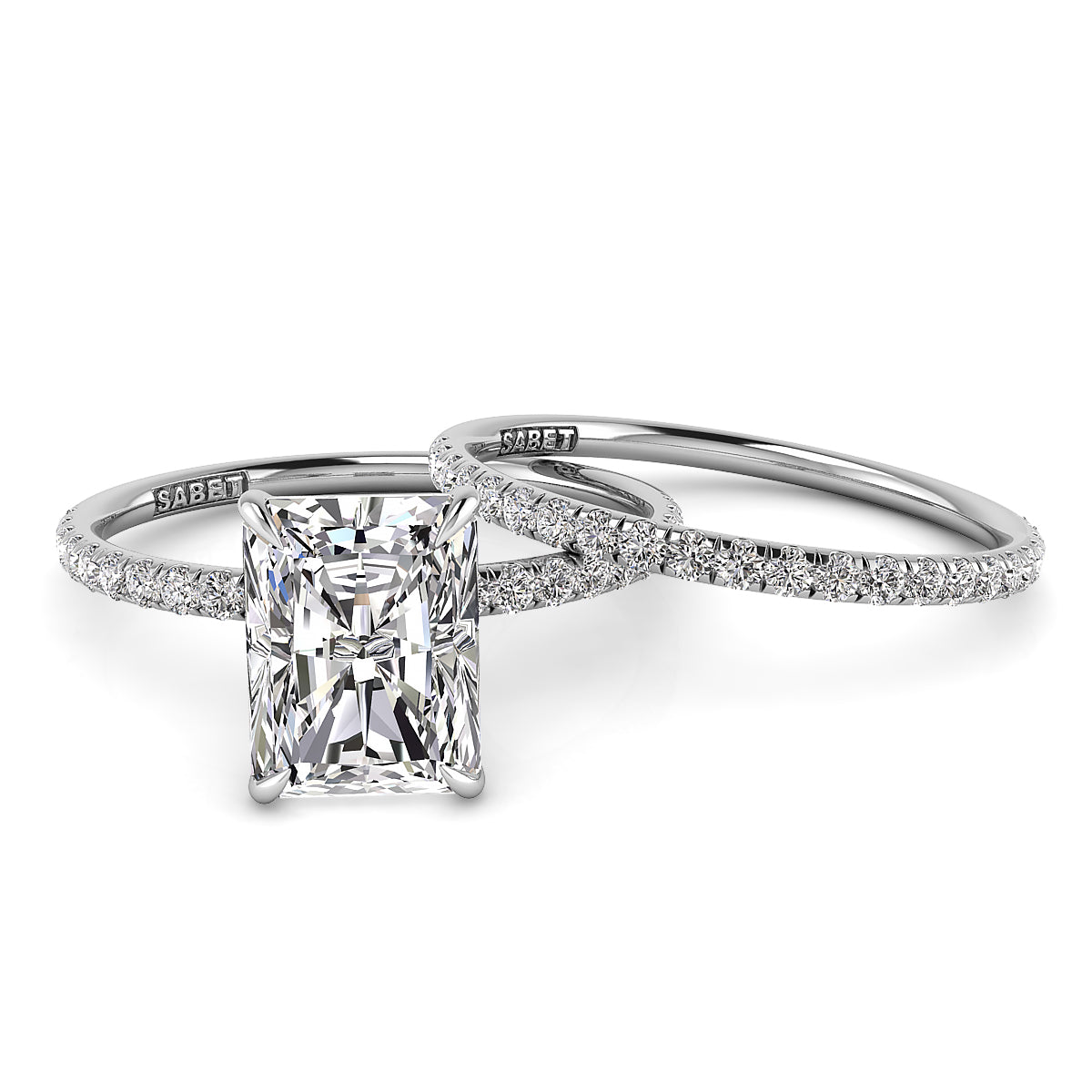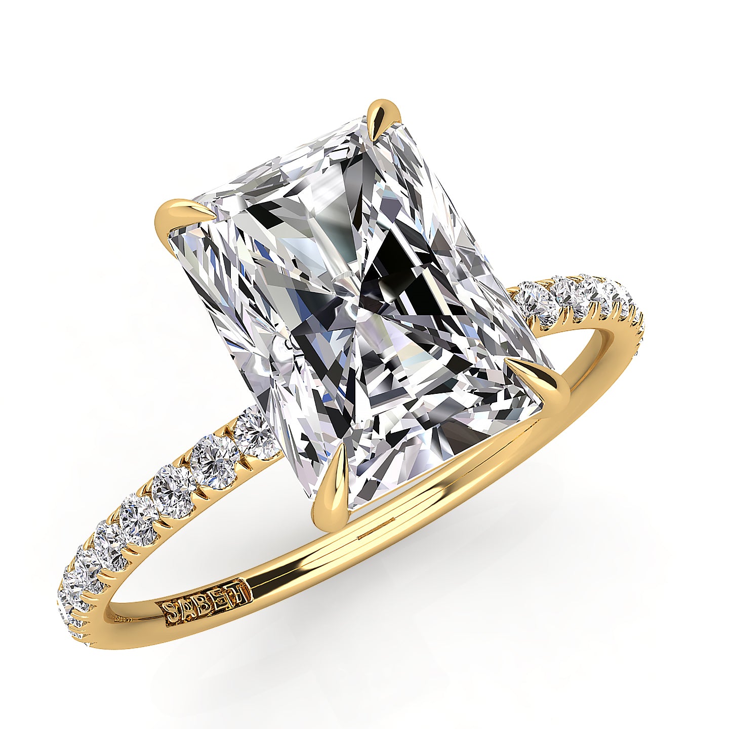 Discover our exquisite Radiant cut engagement rings featuring a stunning pave diamond belt. Each ring showcases a brilliant Radiant center stone, elegantly embraced by a sparkling pave diamond band, creating a luxurious and timeless look. Perfect for those seeking a unique and dazzling symbol of everlasting love, our Radiant pave engagement rings offer exceptional brilliance and unmatched elegance. Shop now to find your dream diamond engagement ring with a breathtaking pave diamond belt.