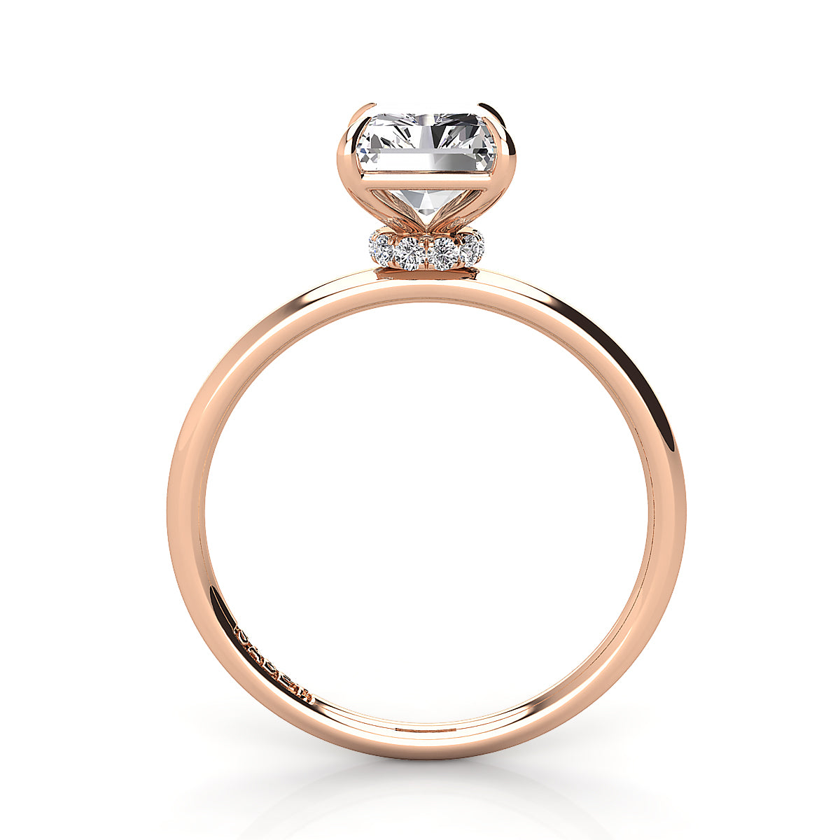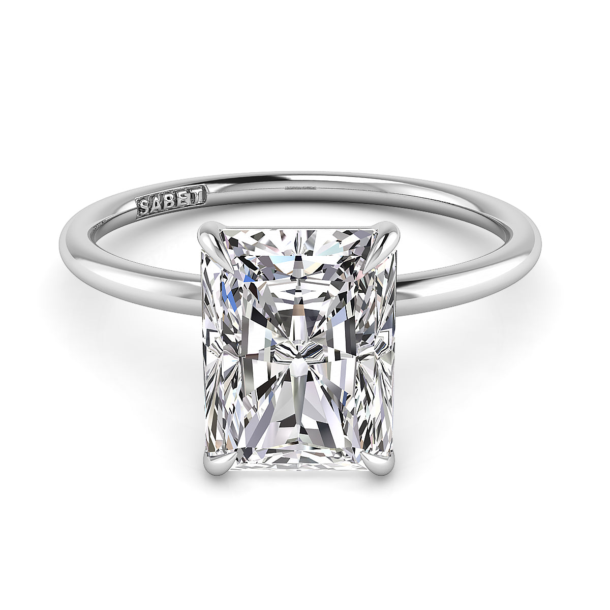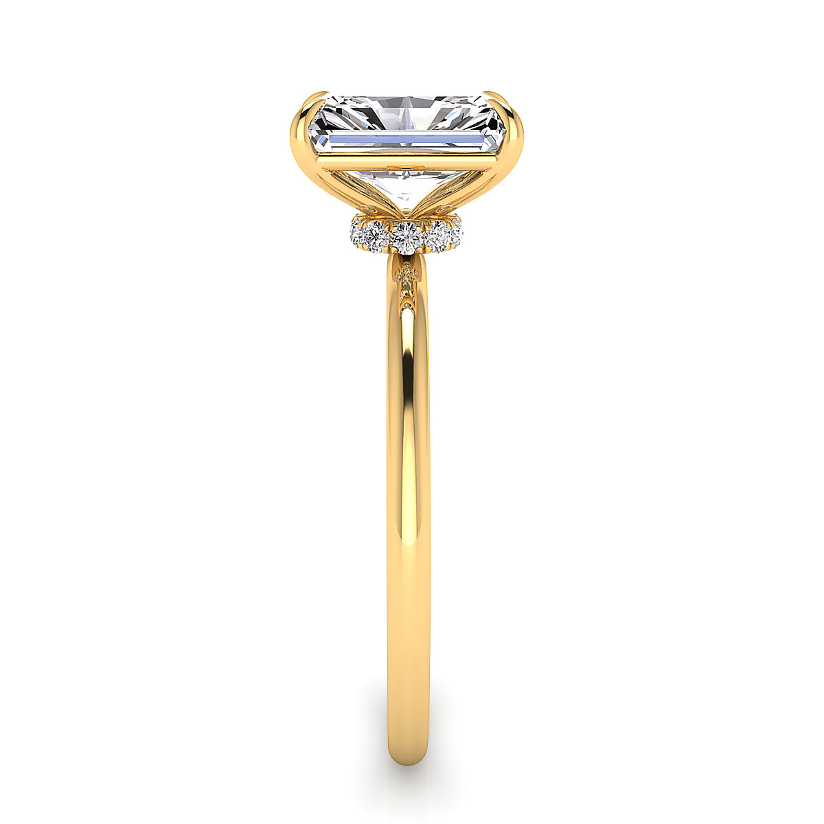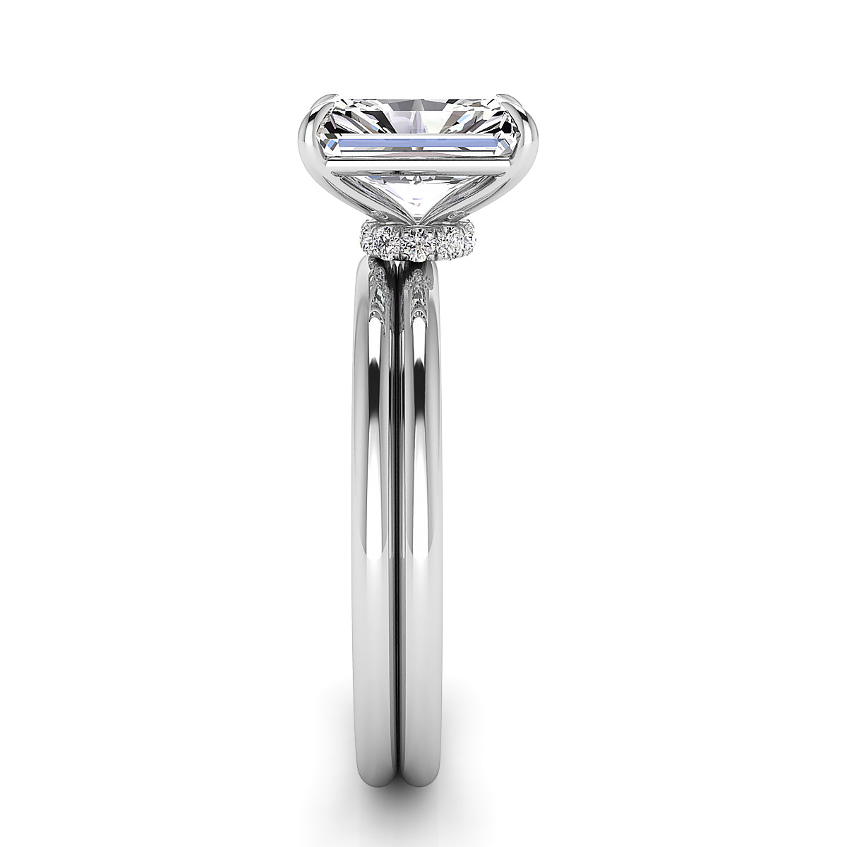 Radiant cut engagement ring featuring a dazzling diamond belt and elegant pave setting. This stunning ring showcases brilliant diamonds set along the band, enhancing the beauty of the radiant center stone. Perfect for those seeking a luxurious and timeless engagement ring with extra sparkle and sophistication. Ideal choice for a modern yet classic diamond engagement ring.