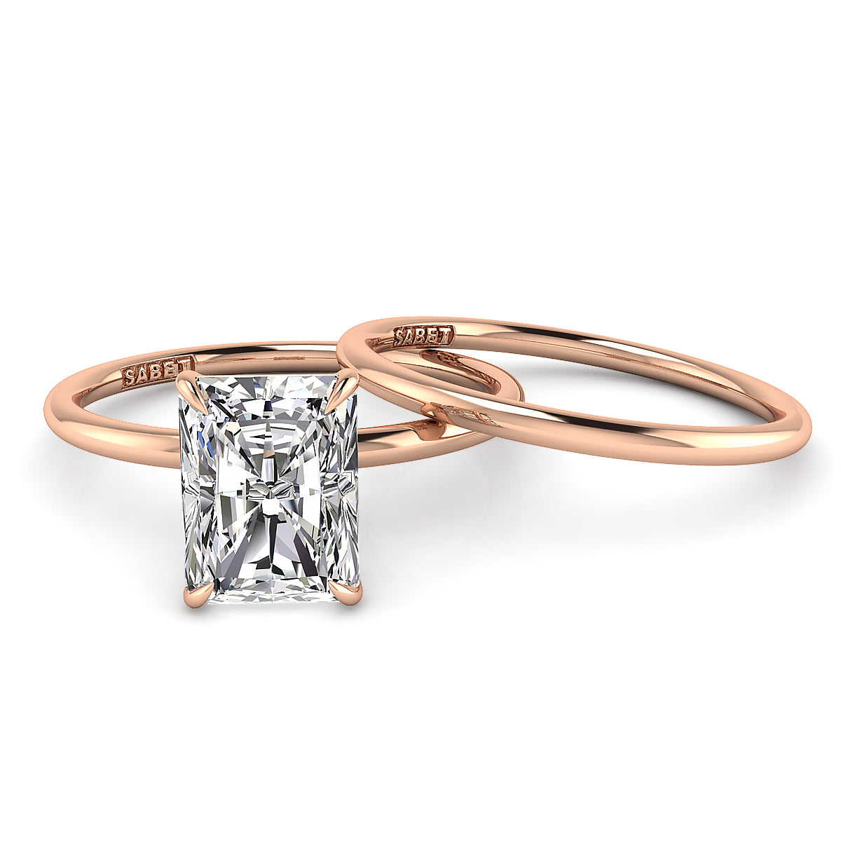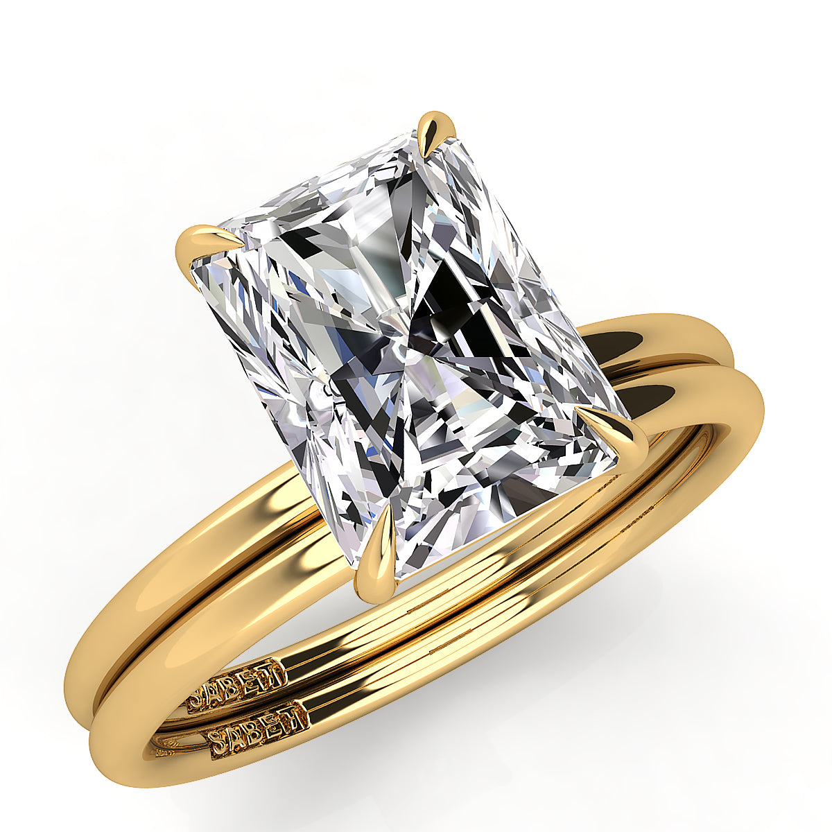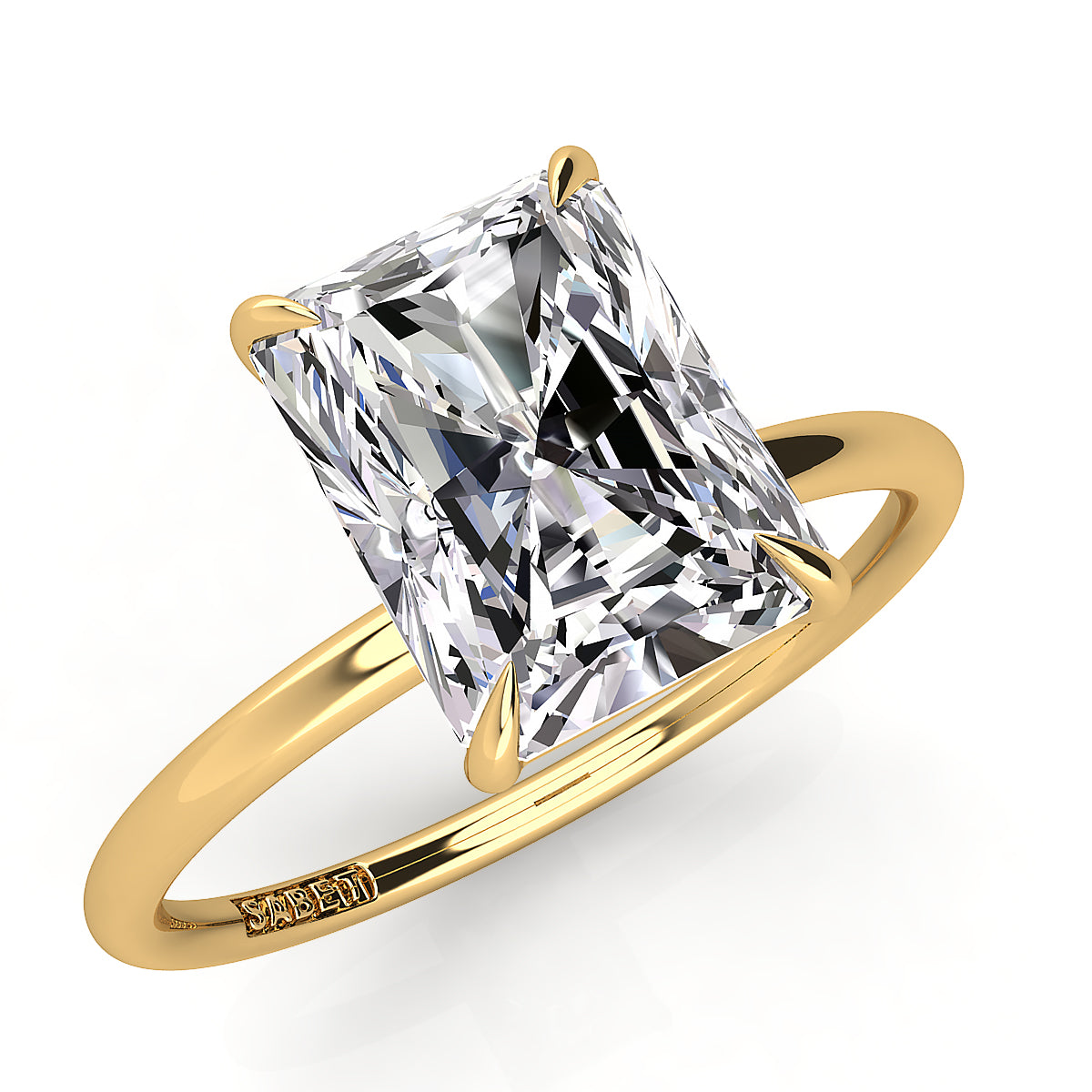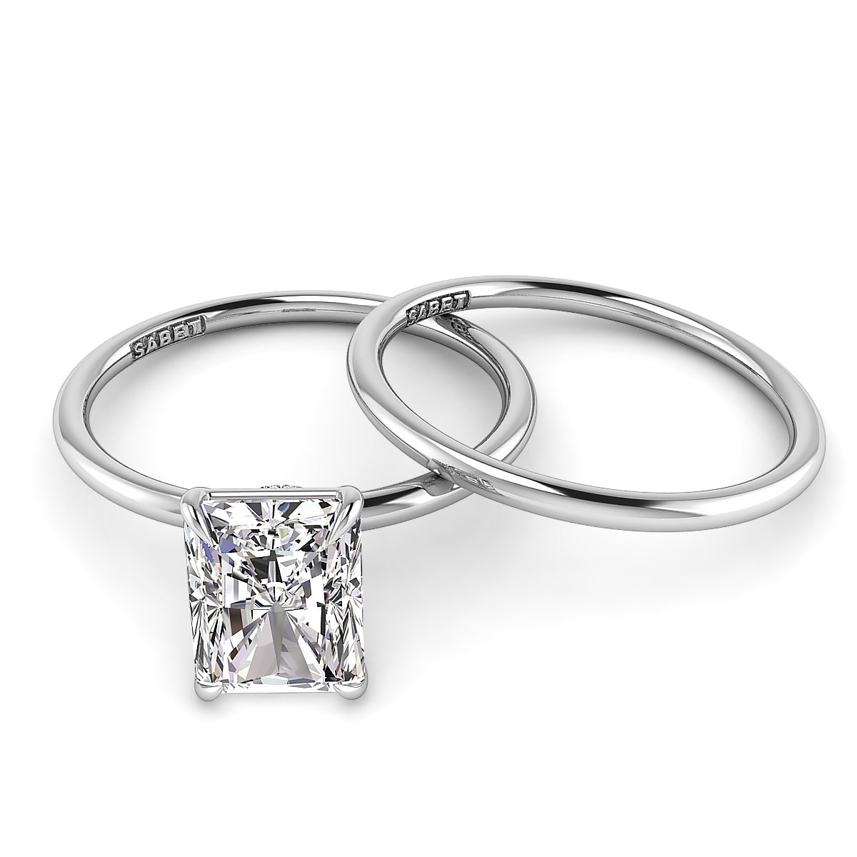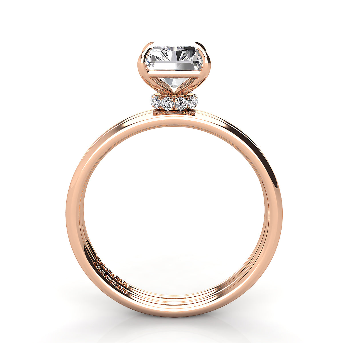 Radiant cut engagement ring featuring a dazzling diamond belt and elegant pave setting. This stunning ring showcases brilliant diamonds set along the band, enhancing the beauty of the radiant center stone. Perfect for those seeking a luxurious and timeless engagement ring with extra sparkle and sophistication. Ideal choice for a modern yet classic diamond engagement ring.