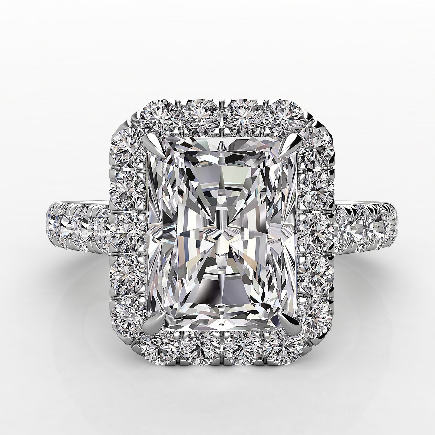 Discover the stunning Halo Radiant Engagement Ring, featuring a dazzling radiant-cut center stone surrounded by a sparkling halo of diamonds. Crafted for exceptional brilliance and elegance, this engagement ring combines modern glamour with timeless style, making it the perfect symbol of your love. Shop our collection of radiant halo engagement rings and find the perfect ring to celebrate your forever.