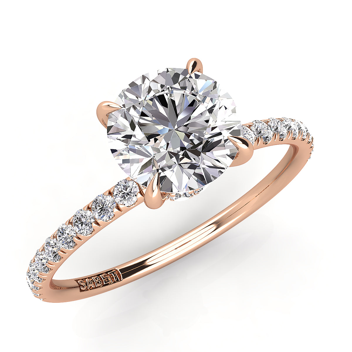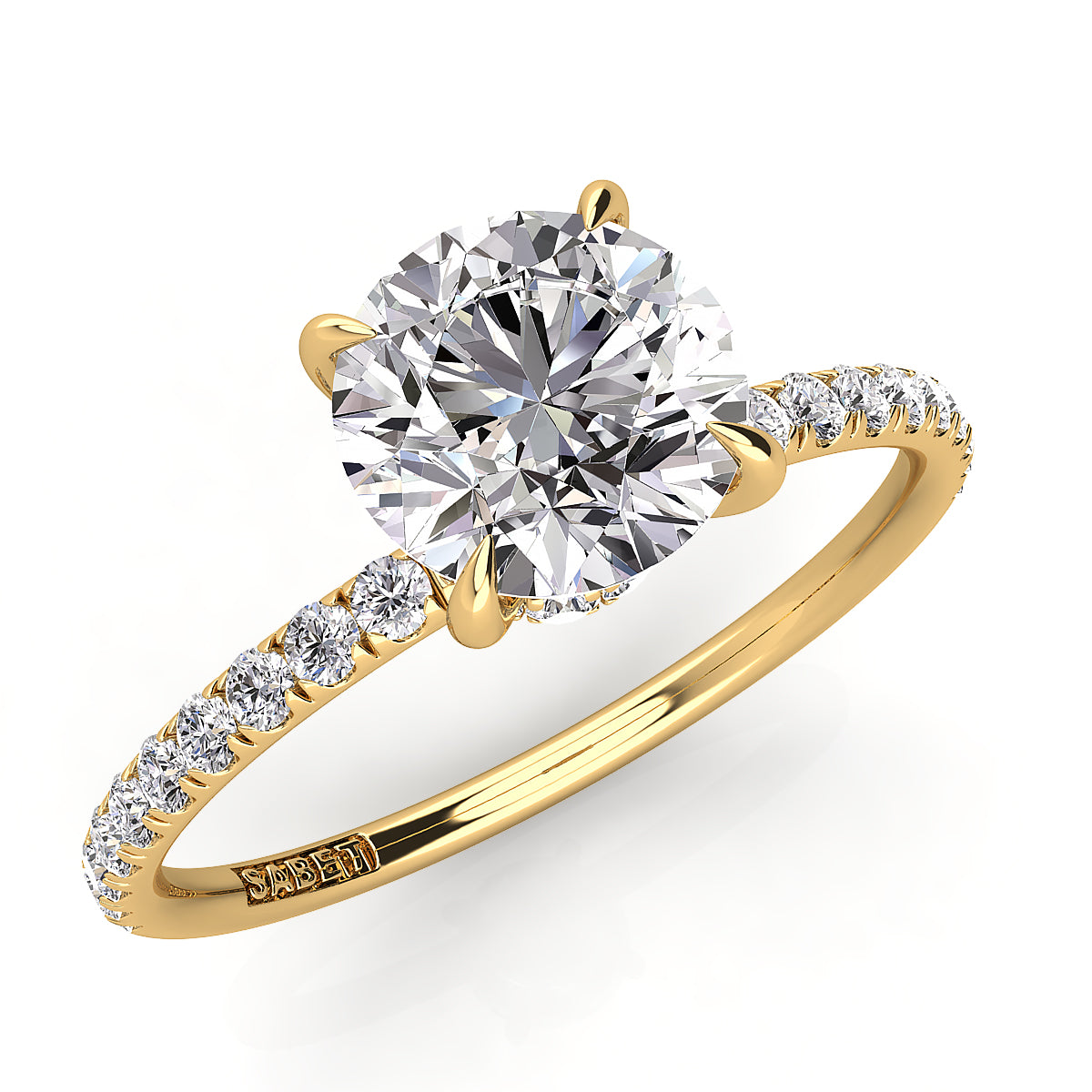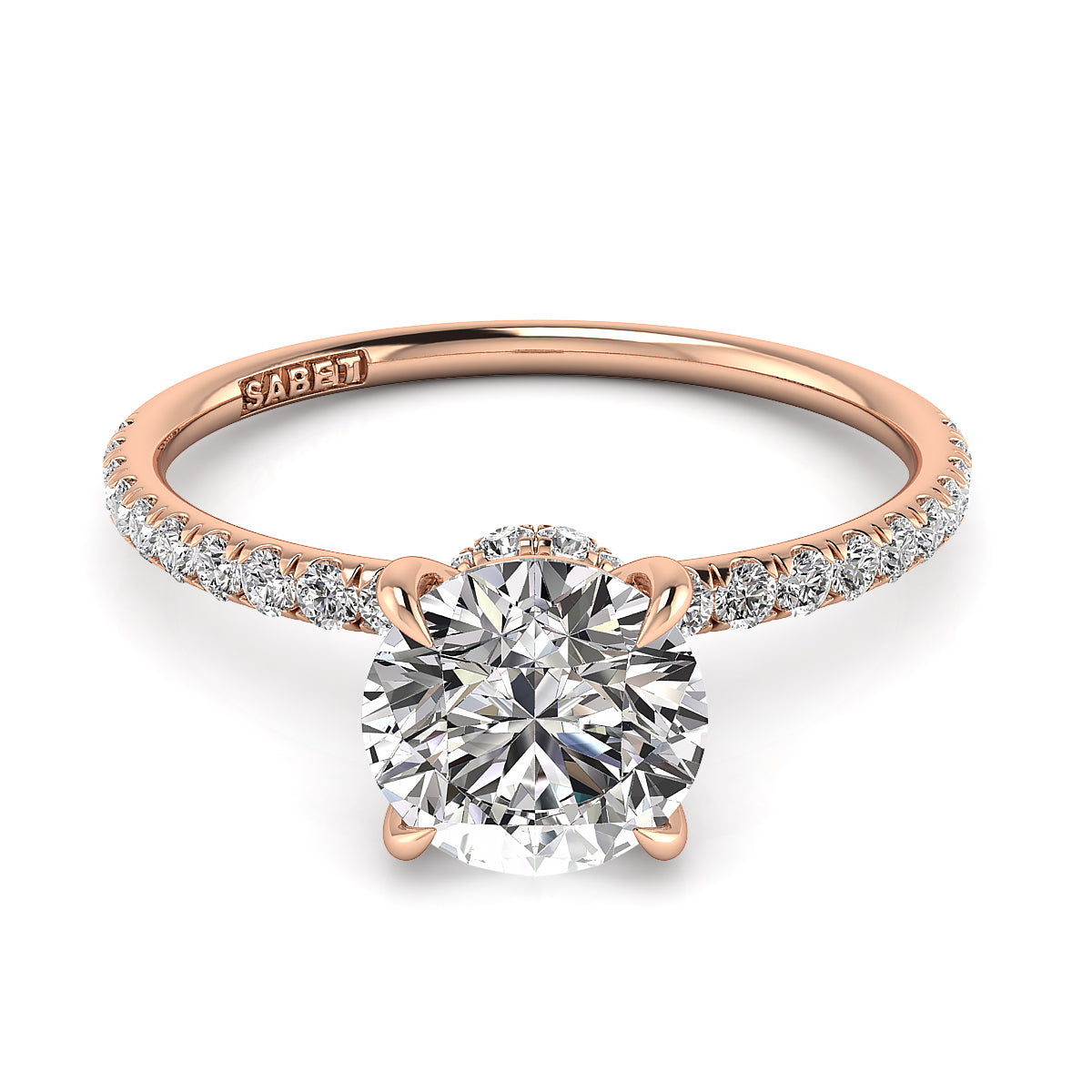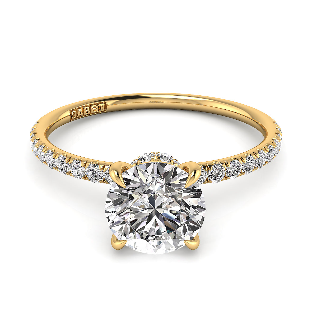 Discover our exquisite round engagement ring featuring a stunning pavé diamond belt. Expertly crafted, this dazzling engagement ring showcases brilliant round diamonds encircling the band, adding sparkle and elegance to symbolize your everlasting love. Perfect for a timeless, elegant proposal, our pavé diamond round engagement rings offer exceptional clarity, brilliance, and style. Shop now for the ultimate engagement ring with a pavé diamond belt, blending classic beauty and modern sophistication.