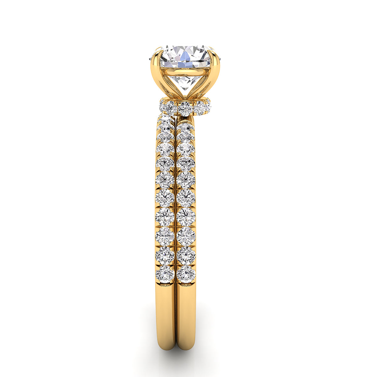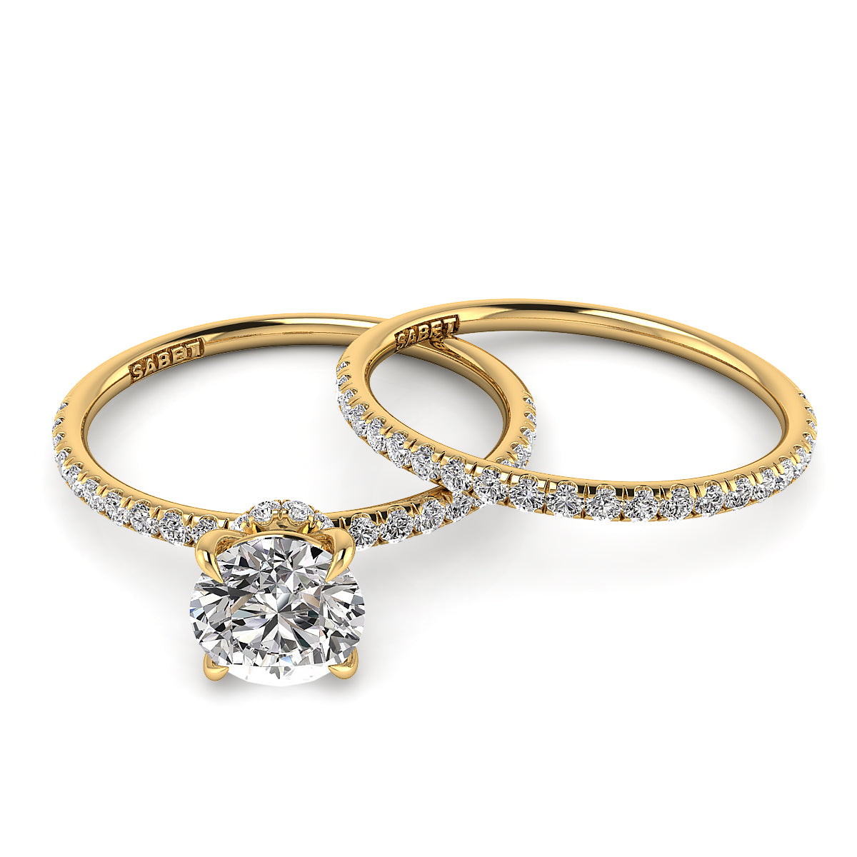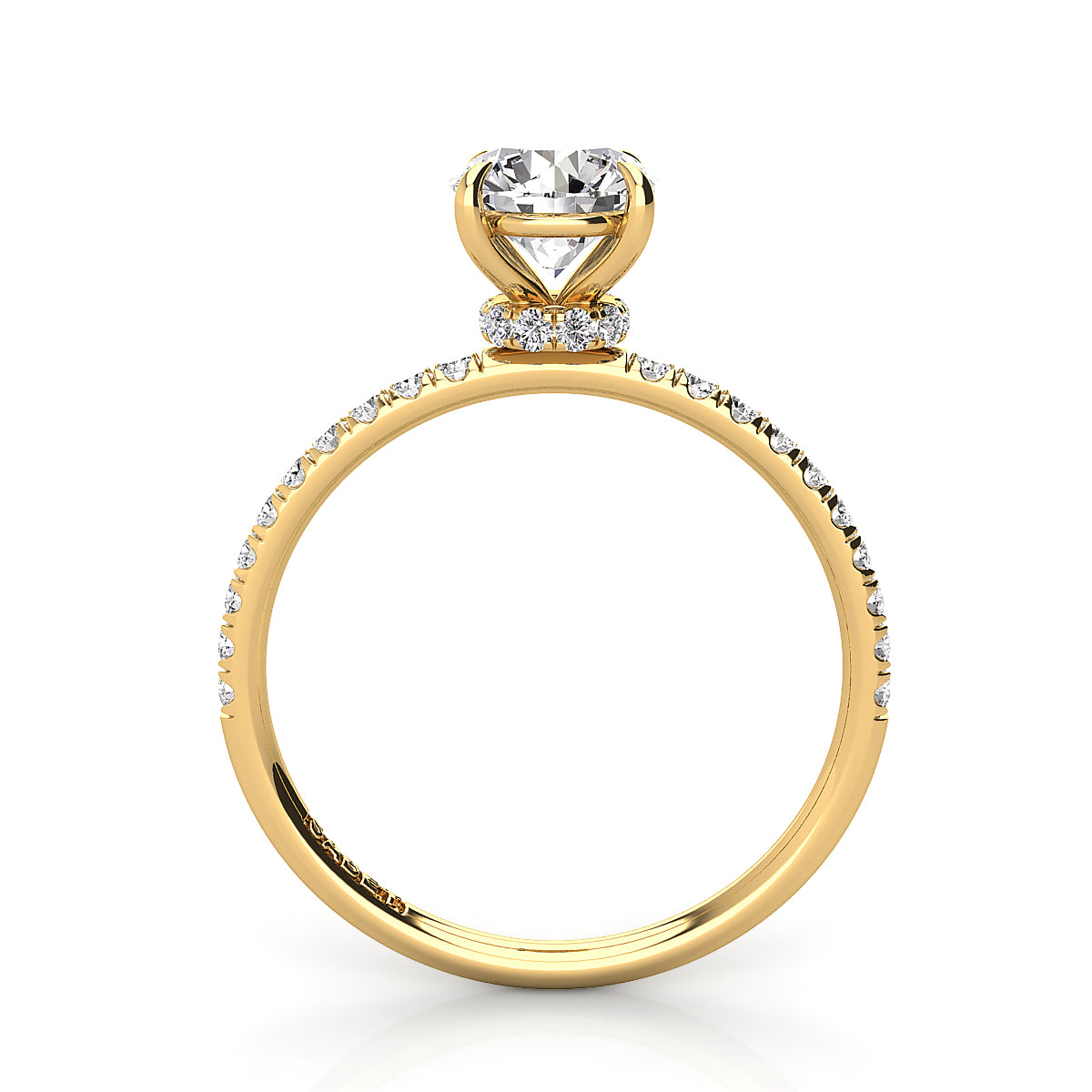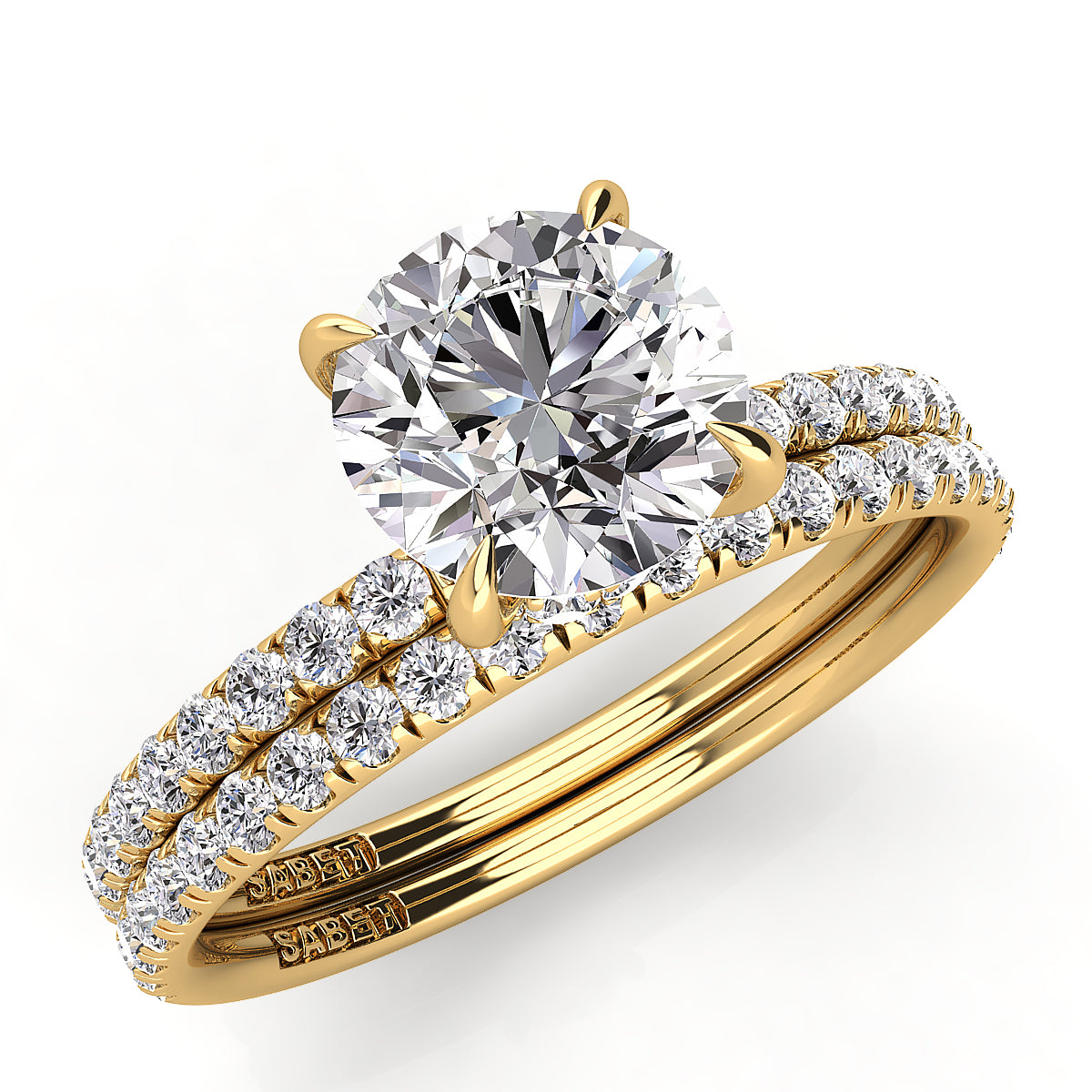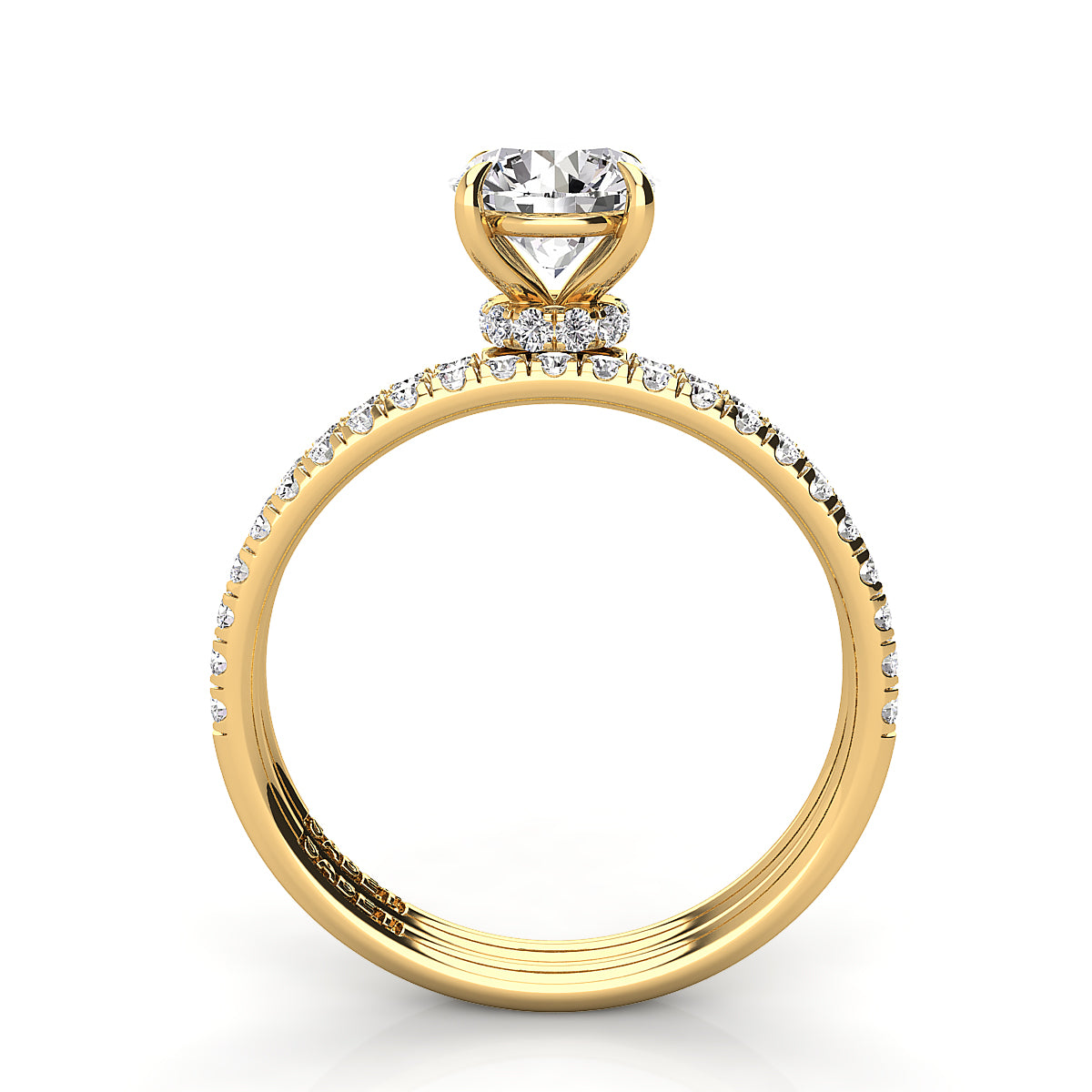 Discover our exquisite round engagement ring featuring a stunning pavé diamond belt. Expertly crafted, this dazzling engagement ring showcases brilliant round diamonds encircling the band, adding sparkle and elegance to symbolize your everlasting love. Perfect for a timeless, elegant proposal, our pavé diamond round engagement rings offer exceptional clarity, brilliance, and style. Shop now for the ultimate engagement ring with a pavé diamond belt, blending classic beauty and modern sophistication.