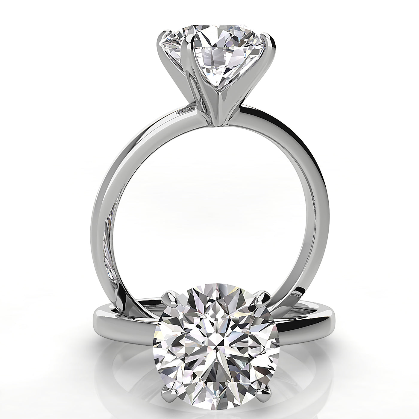 Discover timeless elegance with our Four Prong Solitaire Round engagement rings. Featuring a classic round brilliant diamond securely set in a sleek four prong setting, these solitaire rings maximize sparkle and light reflection. Perfect for those seeking a sophisticated and minimalist style, each ring is expertly crafted for lasting beauty and brilliance. Shop our collection of Four Prong Solitaire Round engagement rings and find the perfect symbol of your love.